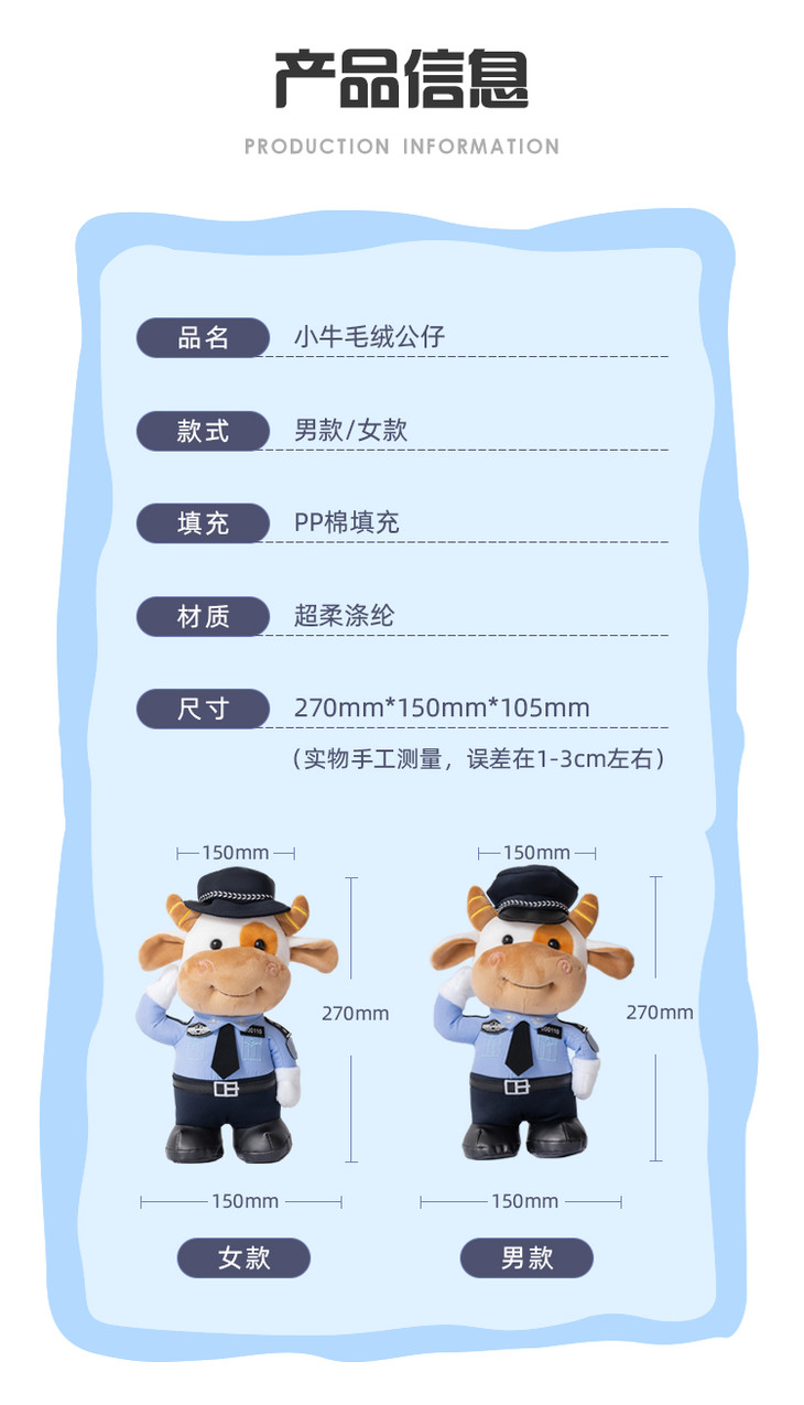【萌萌可爱牛公仔(可定制)】情侣公仔毛绒玩具公仔玩偶布娃娃可爱抱枕毛绒玩具
