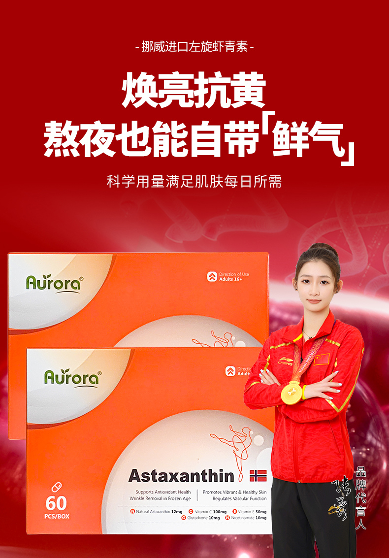 升级版Aurora虾青素胶囊12mg高含量口服烟酰胺雨生红球藻30粒 买二送一到手3盒