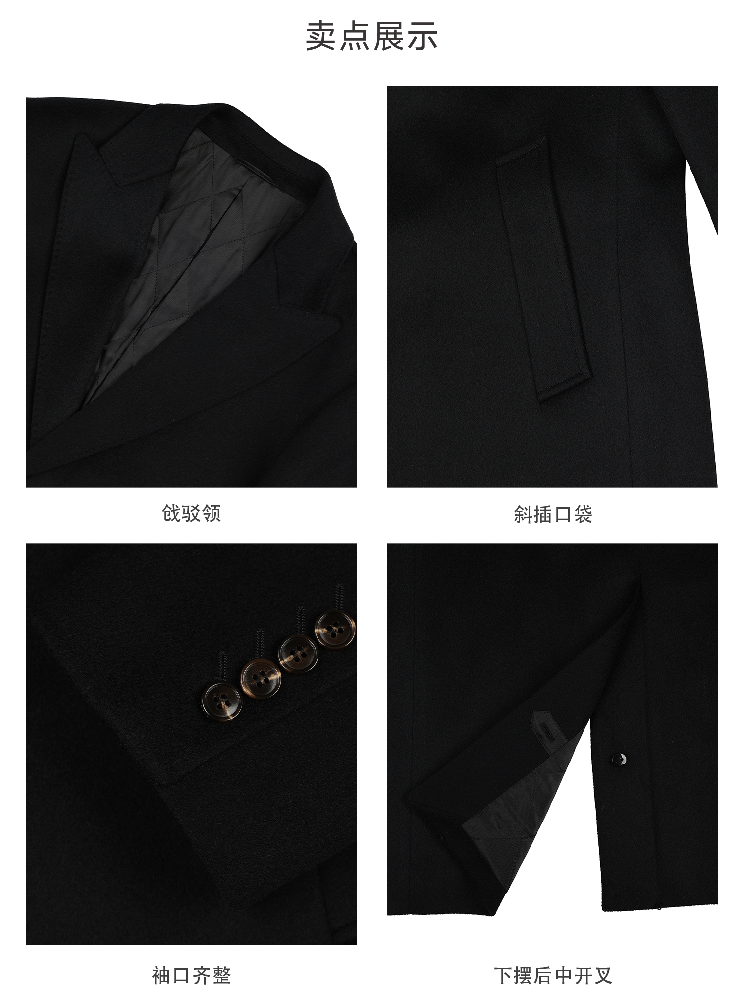 callisto黑色绵羊毛羊绒混纺大衣