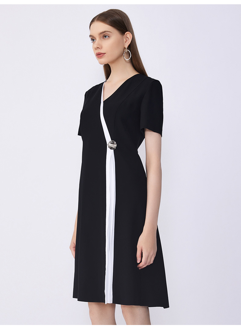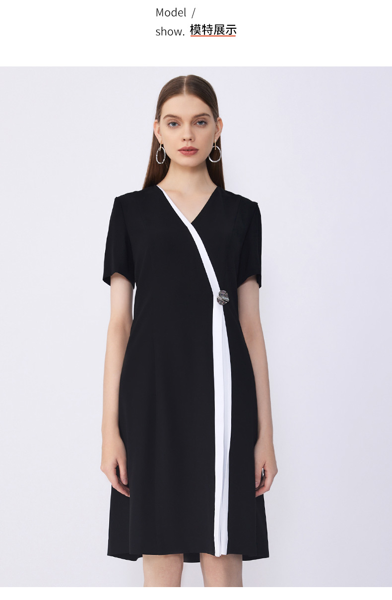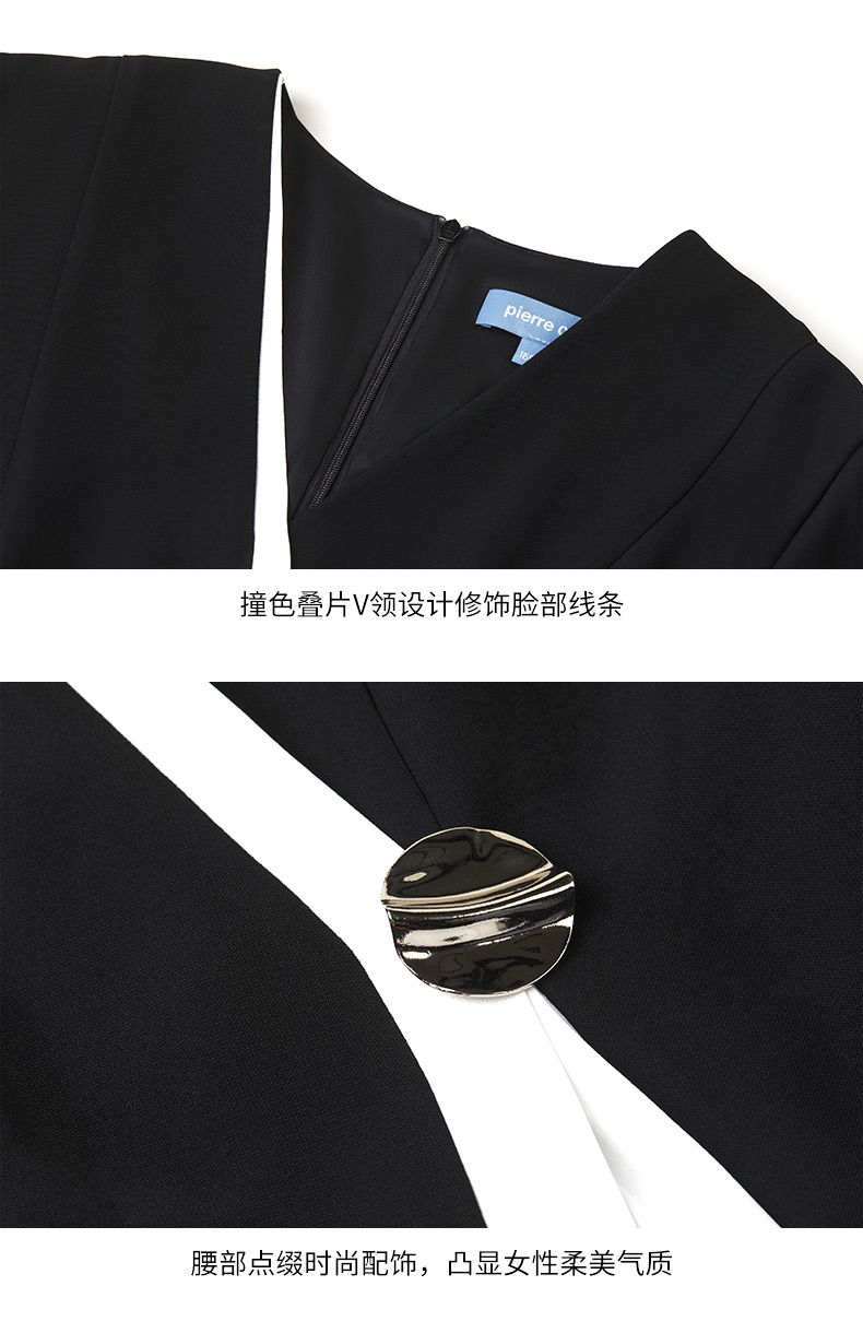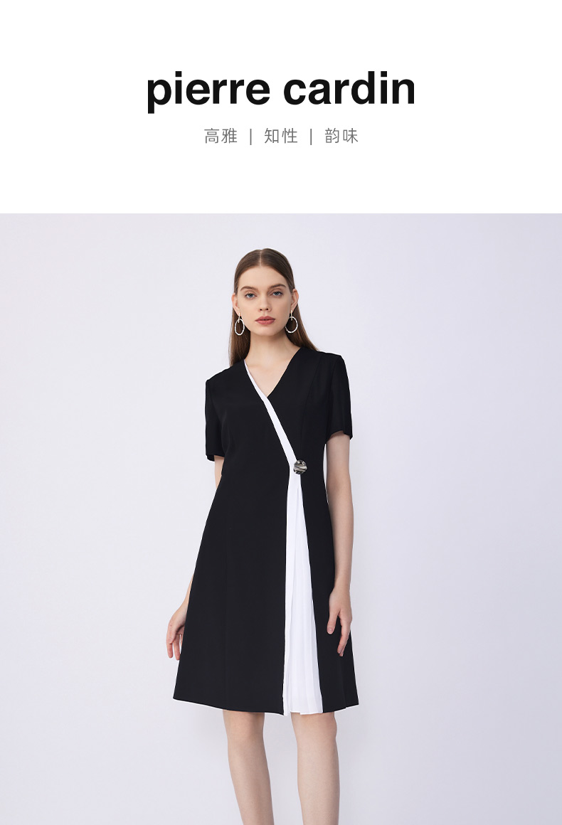 皮尔卡丹女装夏季新款通勤时尚淑女拼色连衣裙C32DS023B0