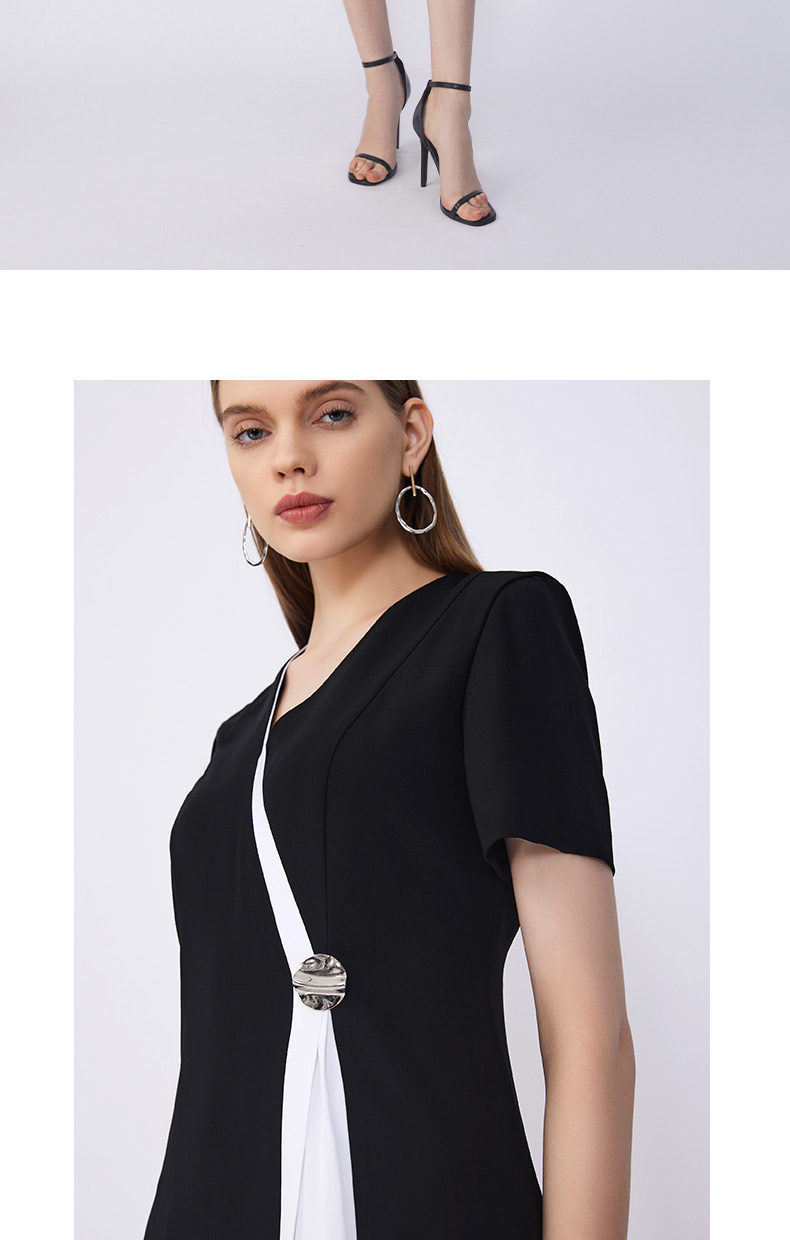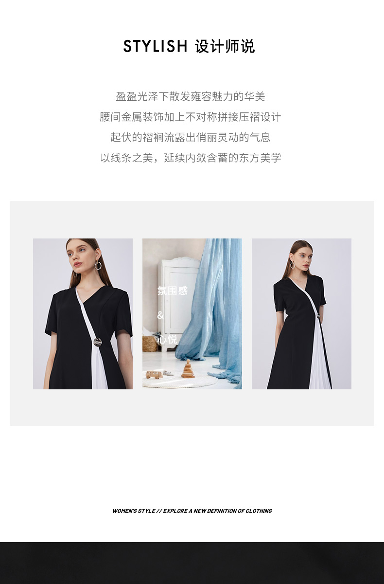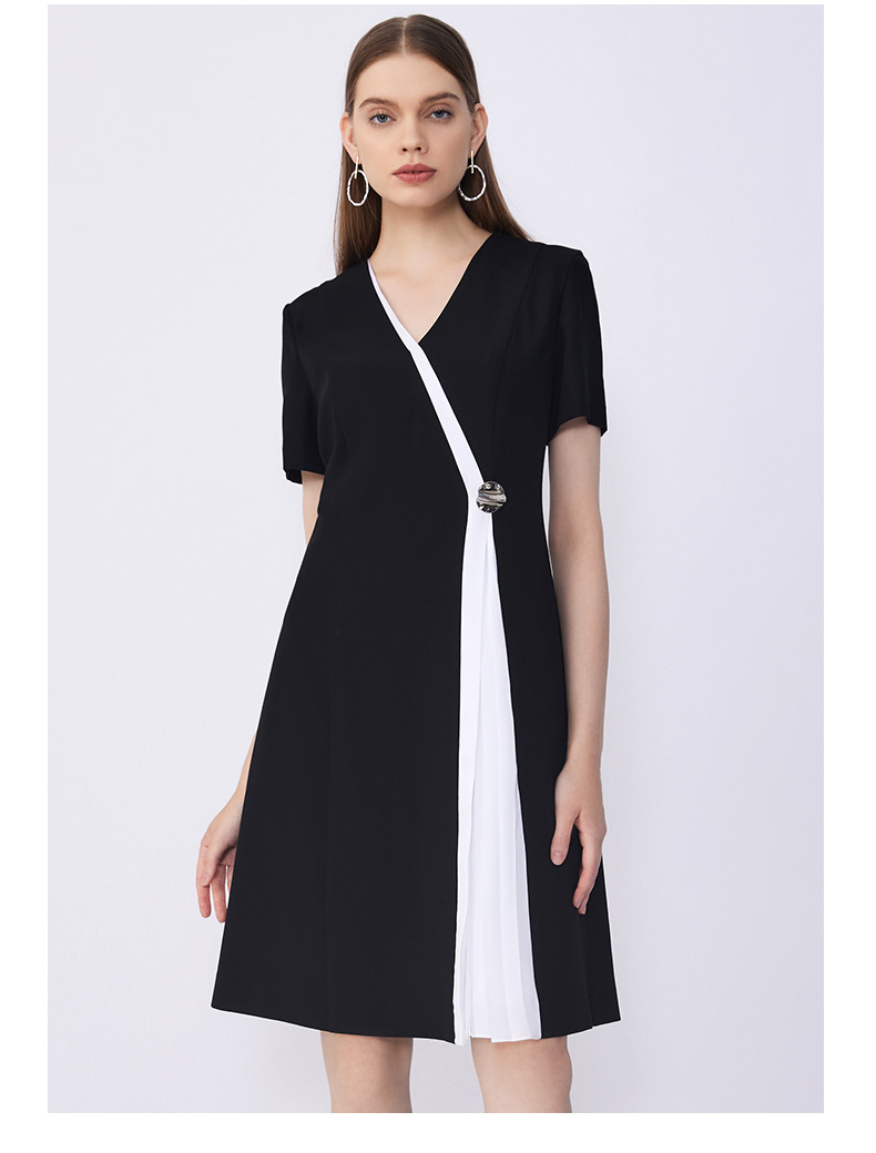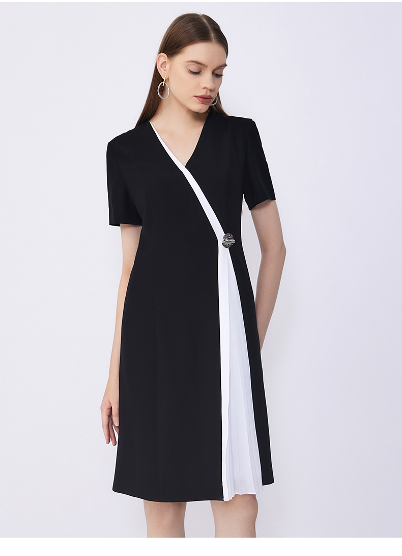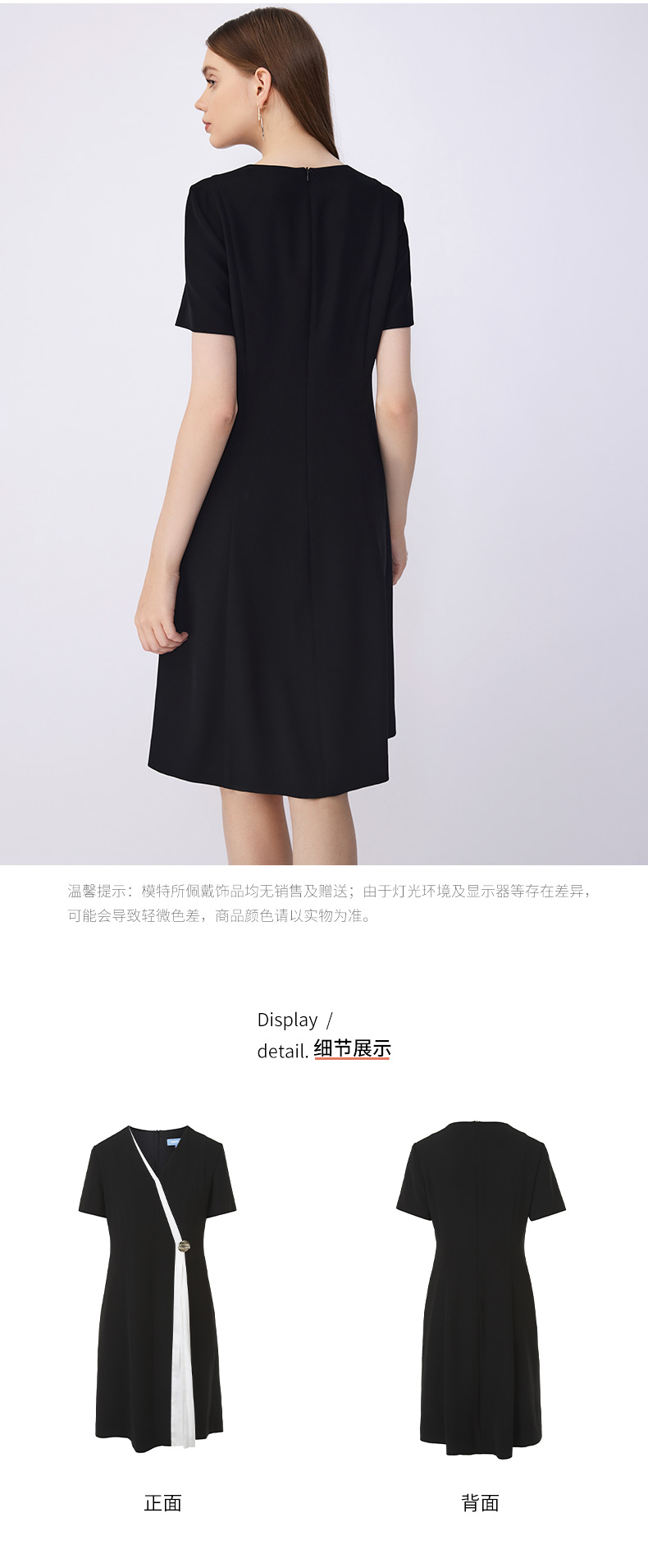 皮尔卡丹女装夏季新款通勤时尚淑女拼色连衣裙C32DS023B0
