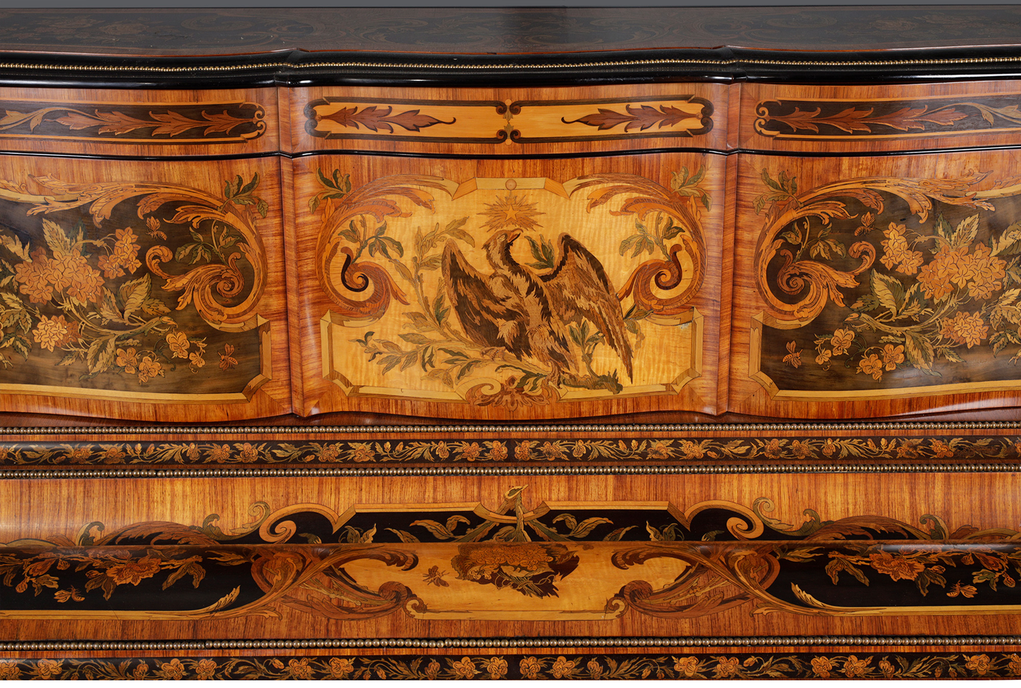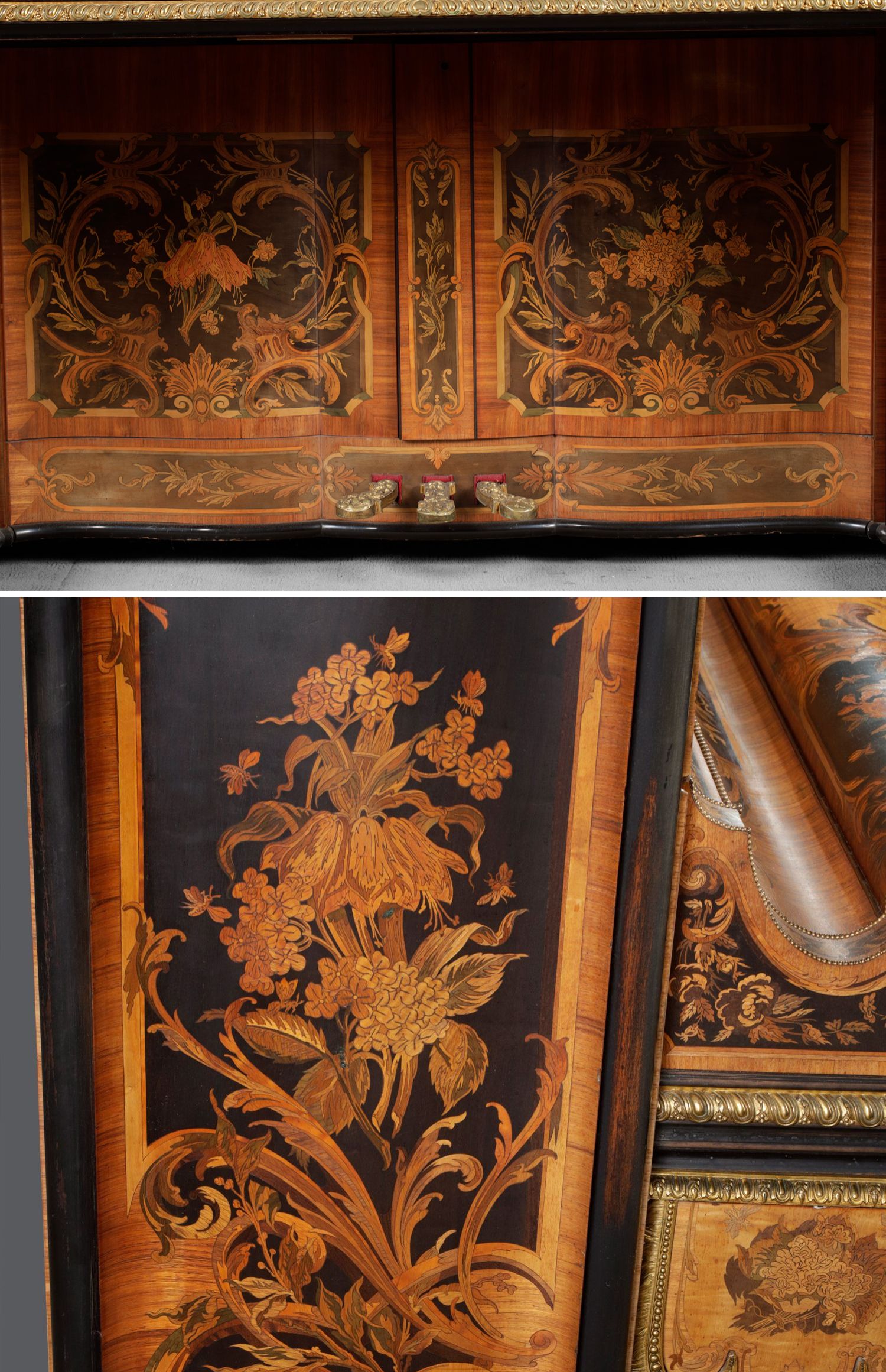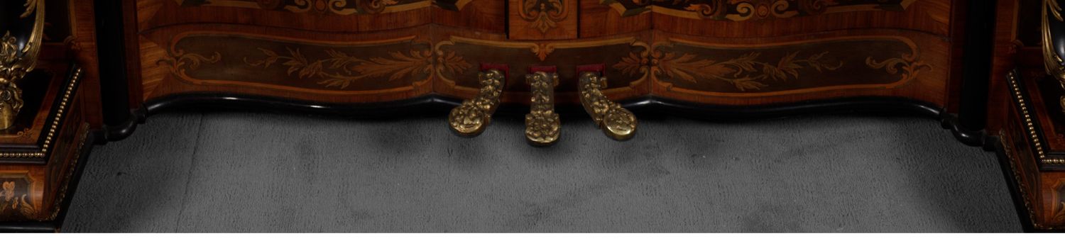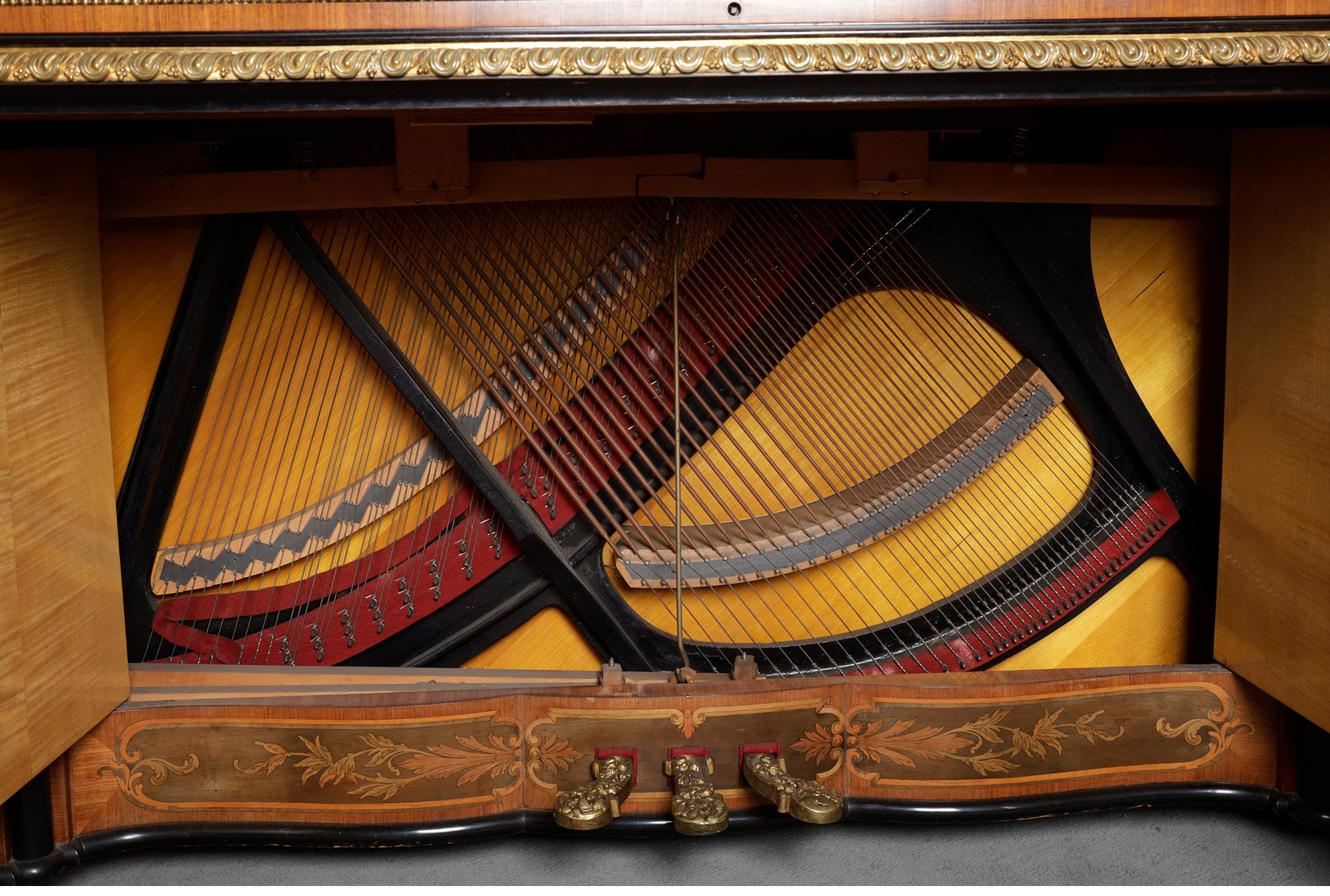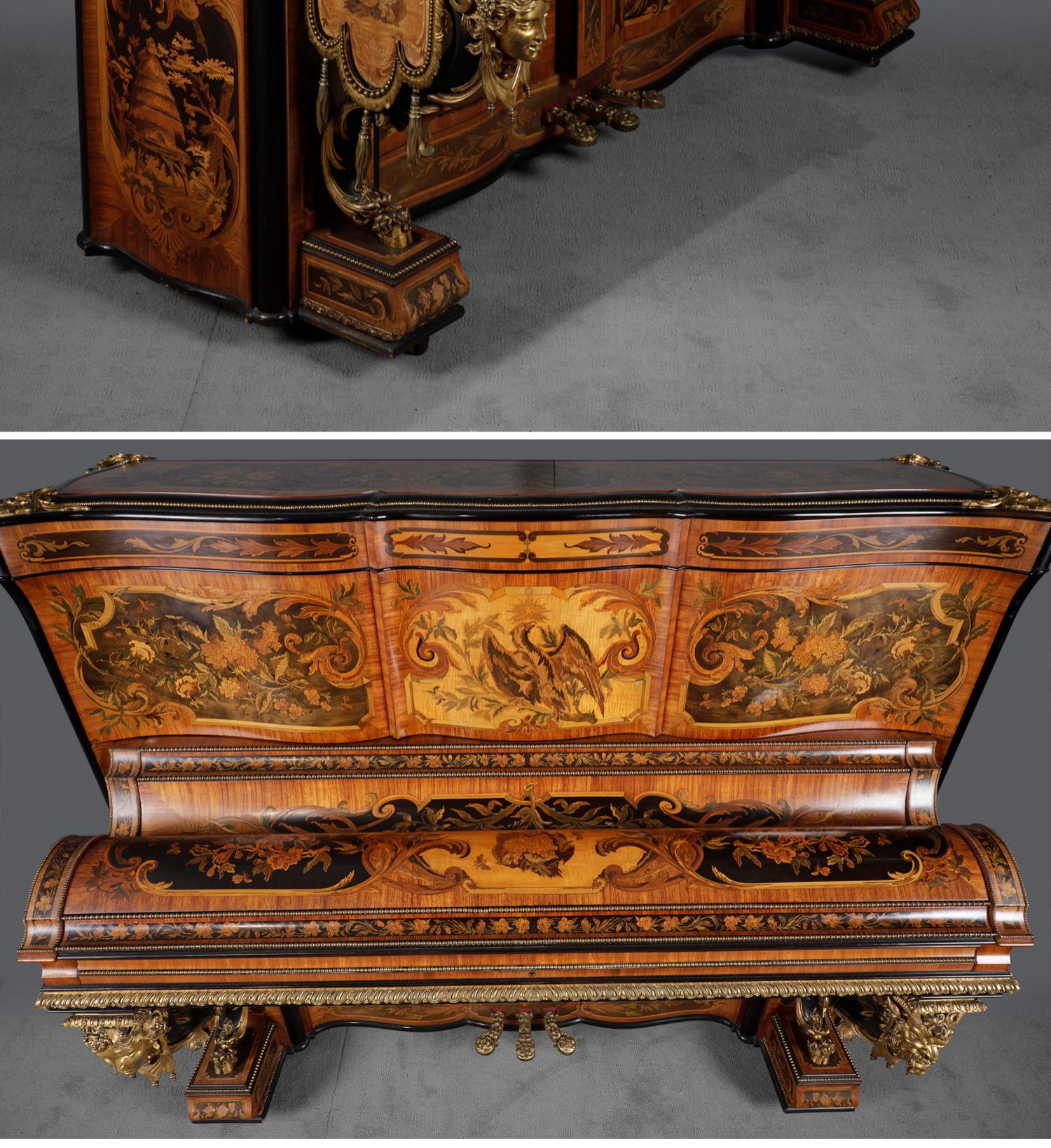 独角鹿西洋古董法国MONTAL PARIS签名铜鎏金细木镶嵌立式钢琴