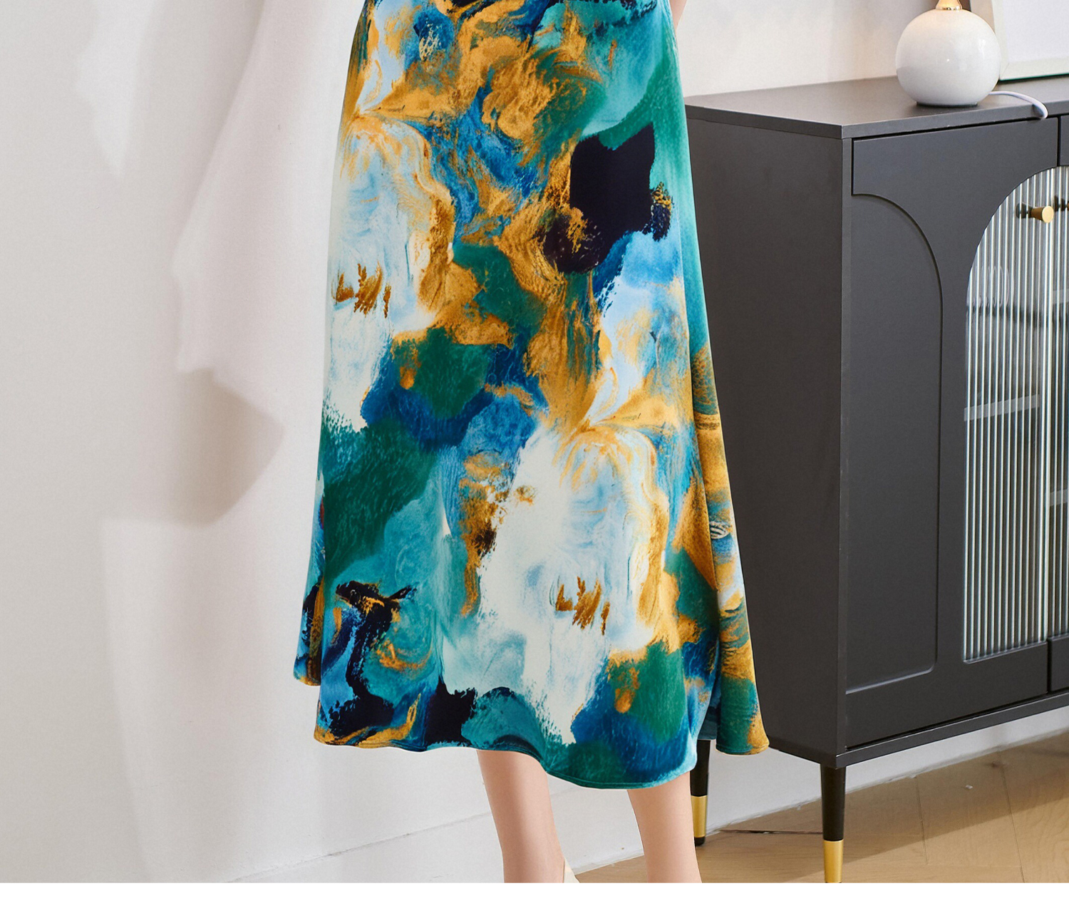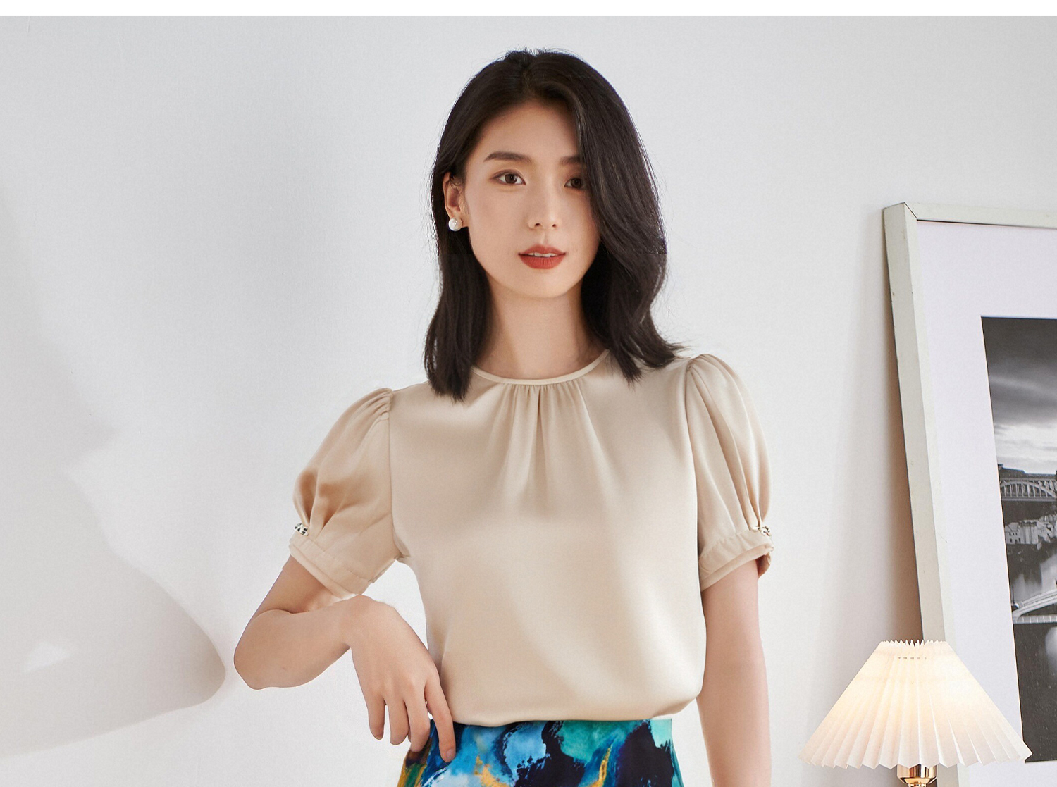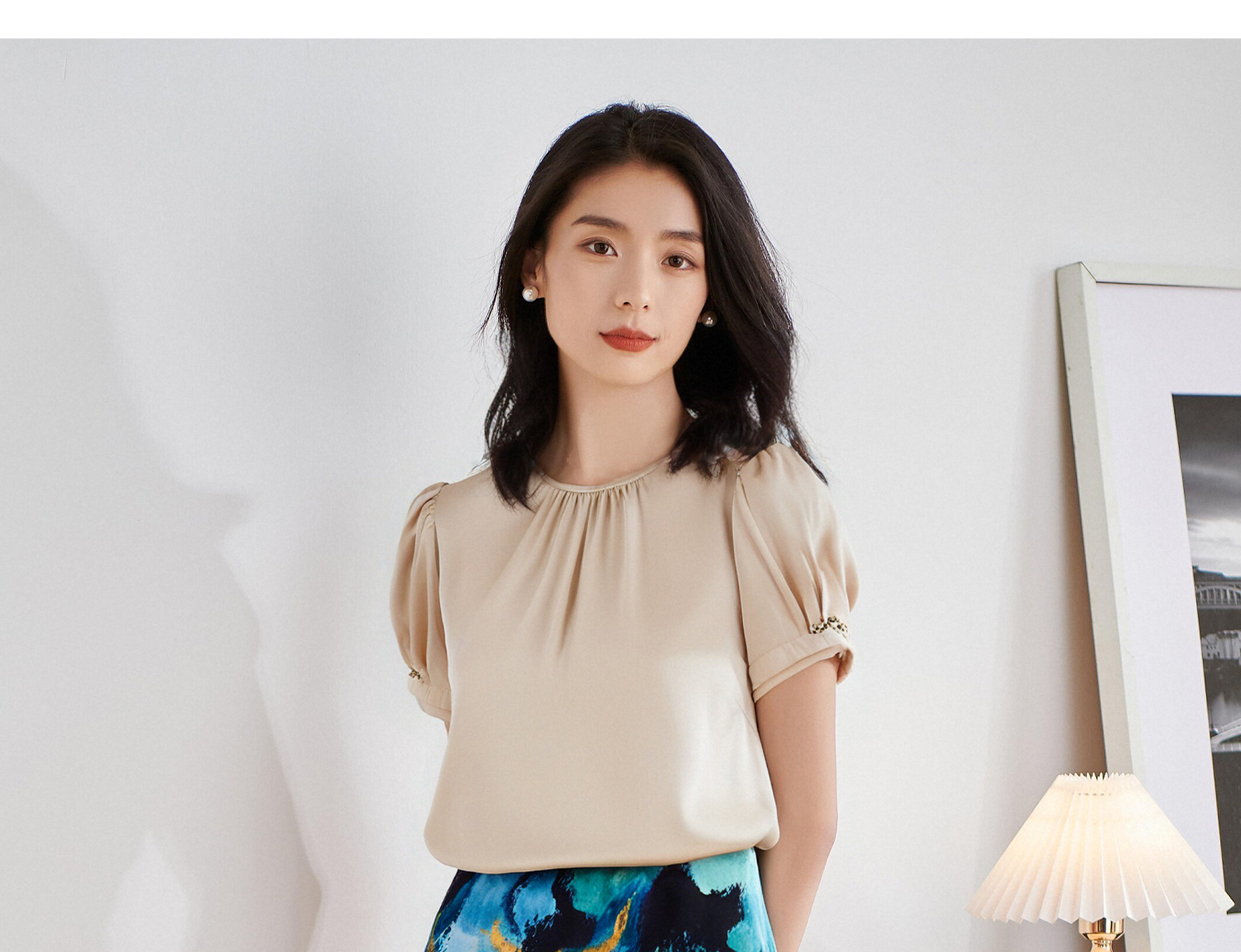 杏色衬衫上衣+印花半身裙5M25BG3922