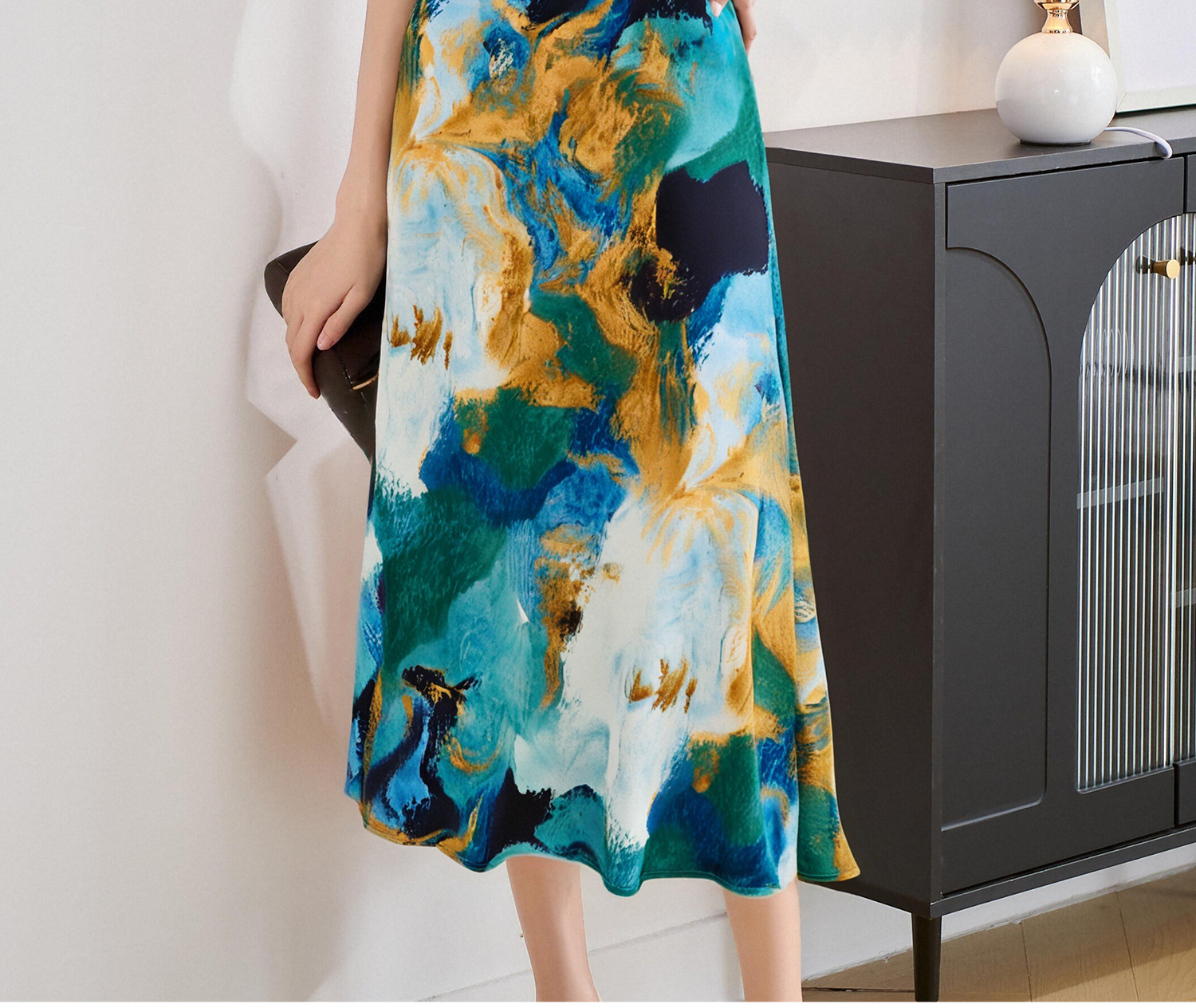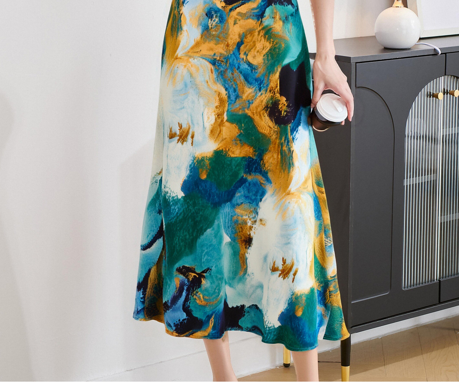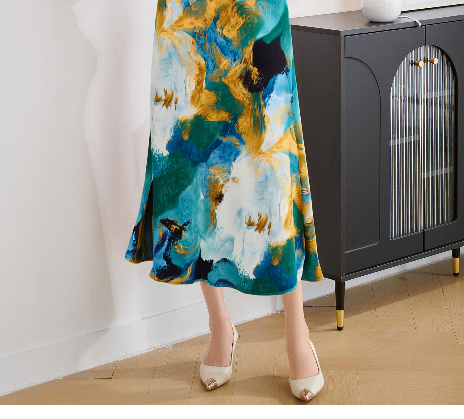 杏色衬衫上衣+印花半身裙5M25BG3922