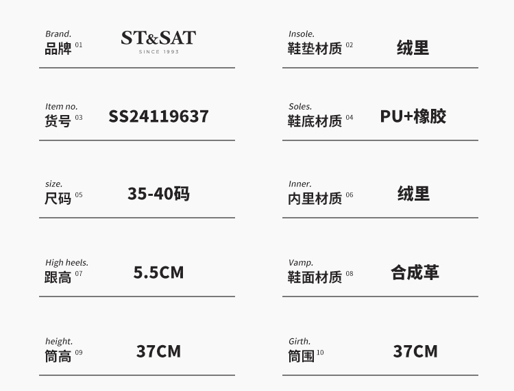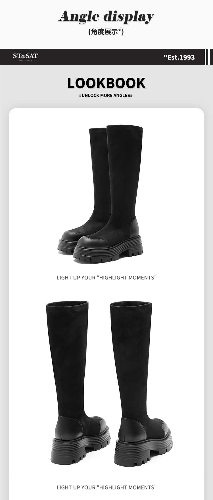 星期六圆头厚底绒里瘦瘦长靴SS24119637