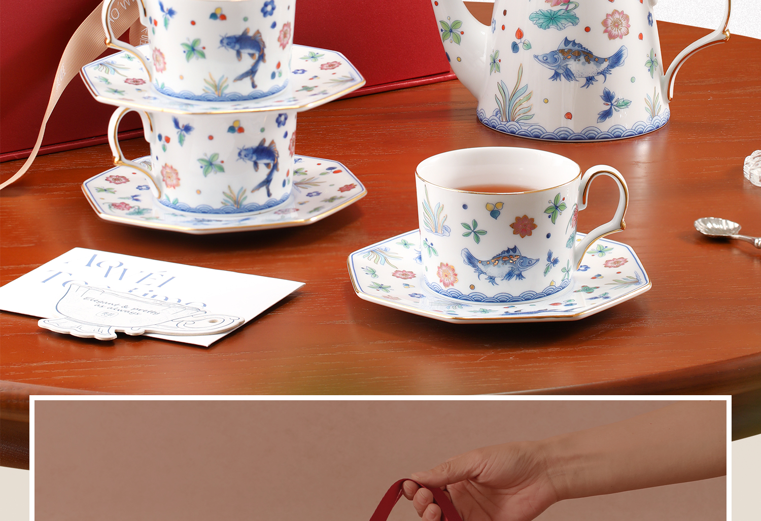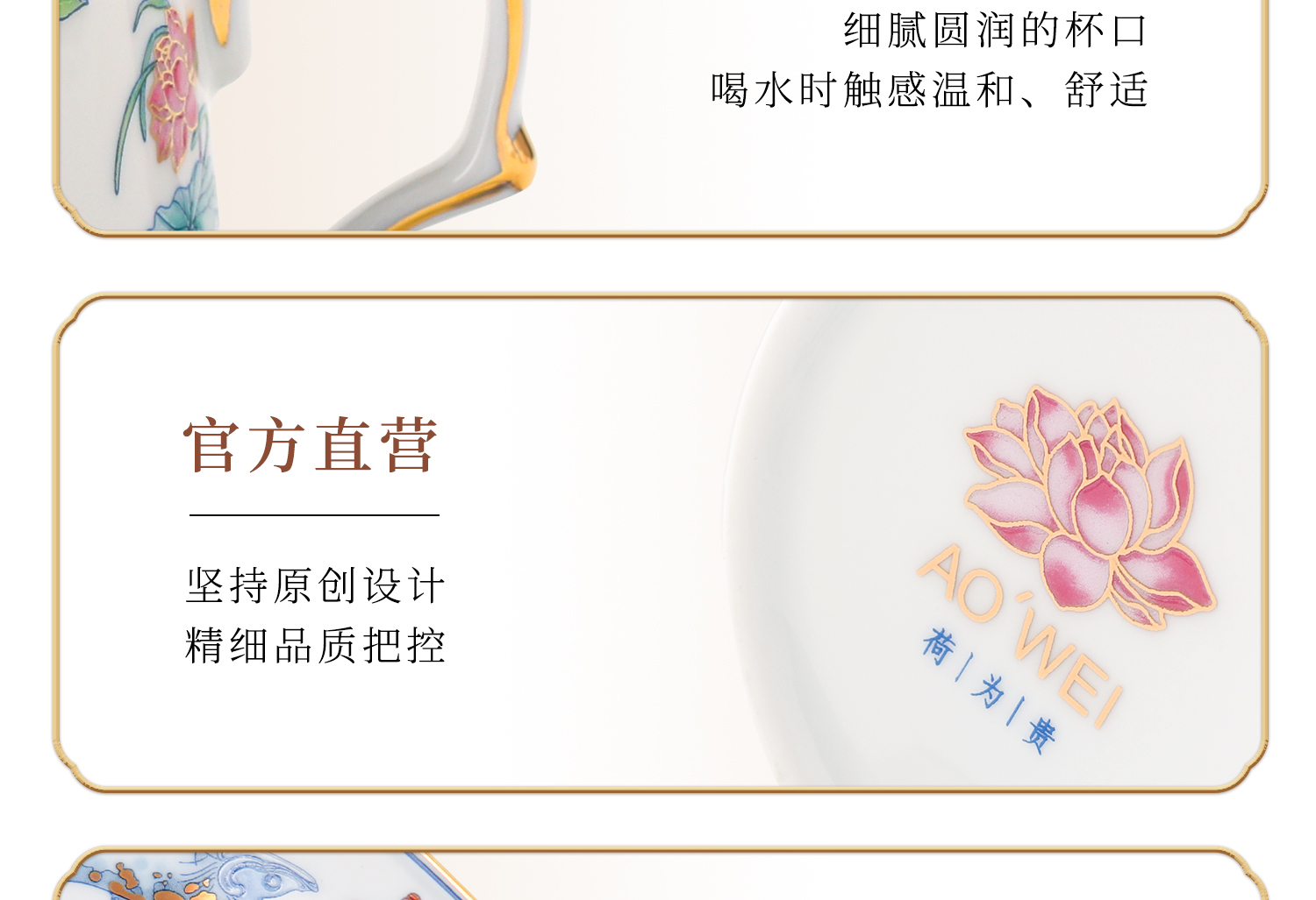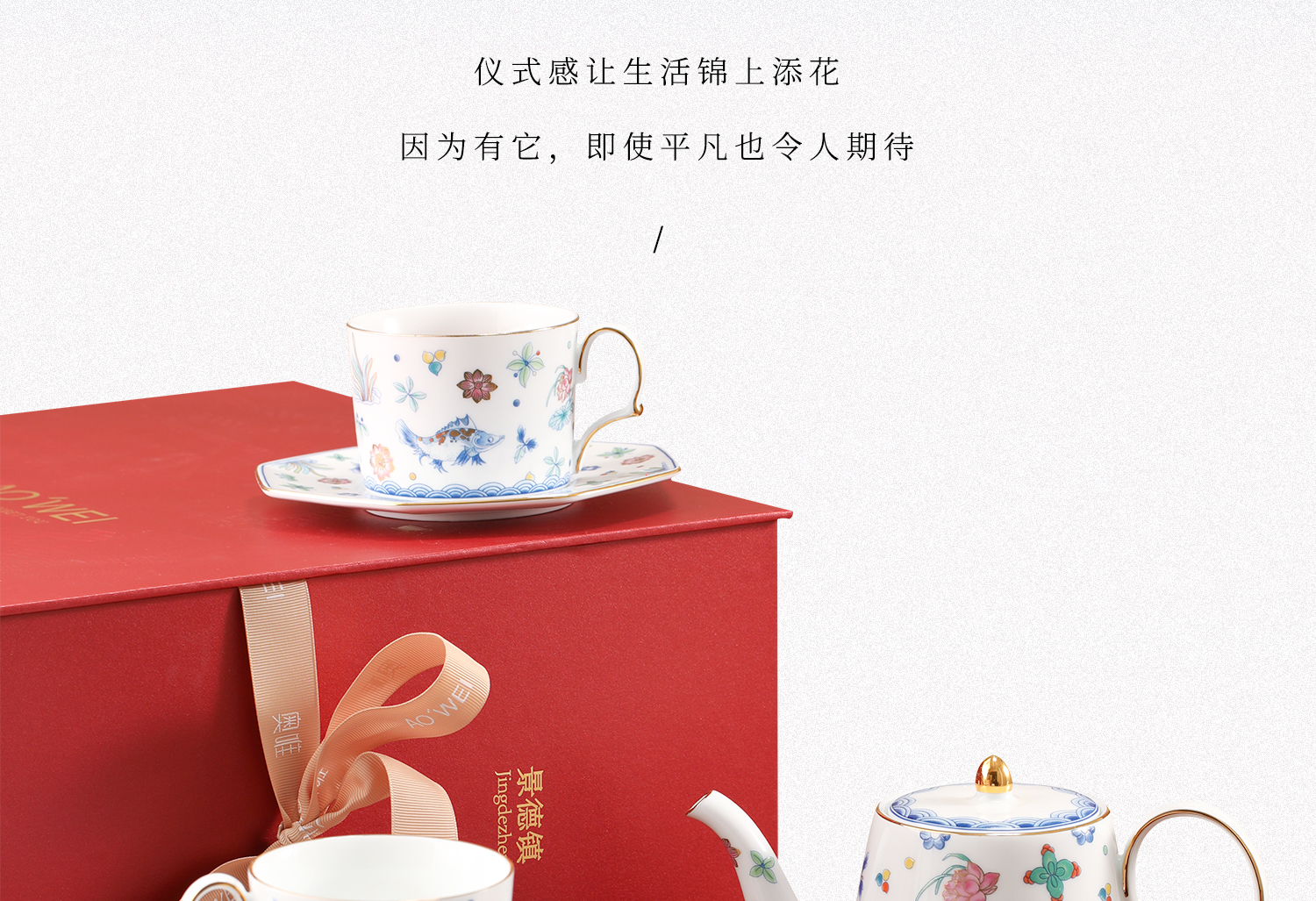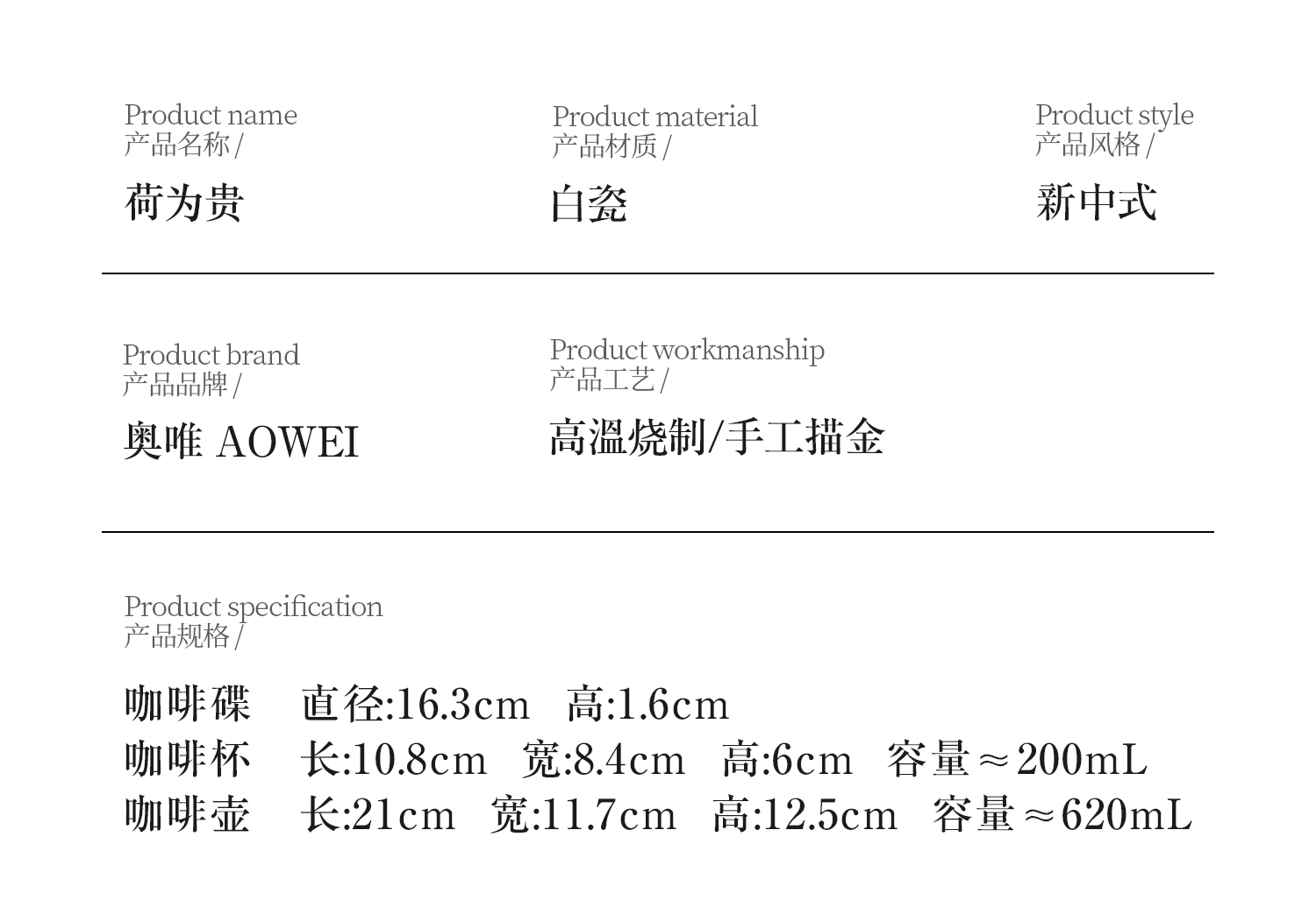 景德镇 奥唯 荷为贵 一壶四杯茶壶茶杯 下午茶组合 乔迁送礼 咖啡杯套装