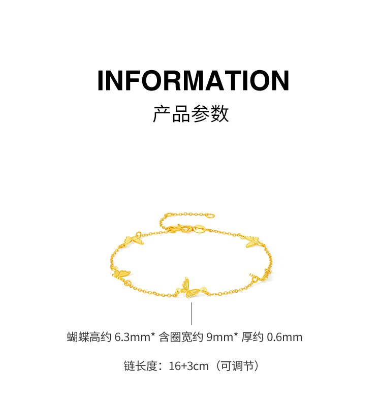周六福5G计价足金手链蝴蝶浪漫舞蝶黄金手链节日礼物
