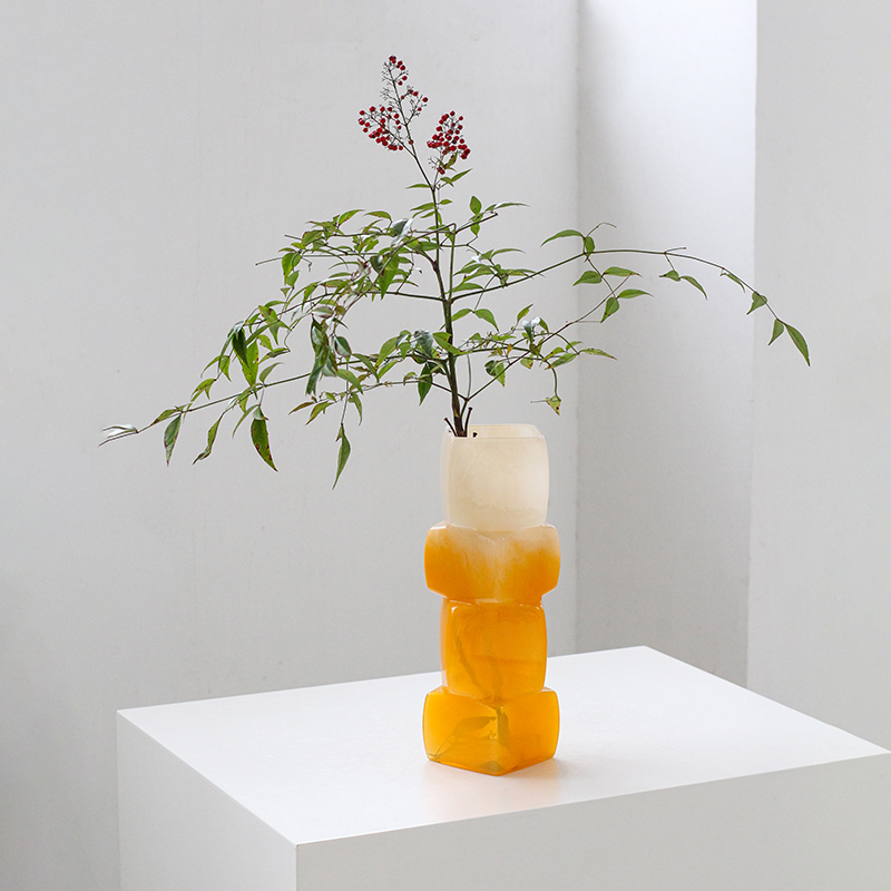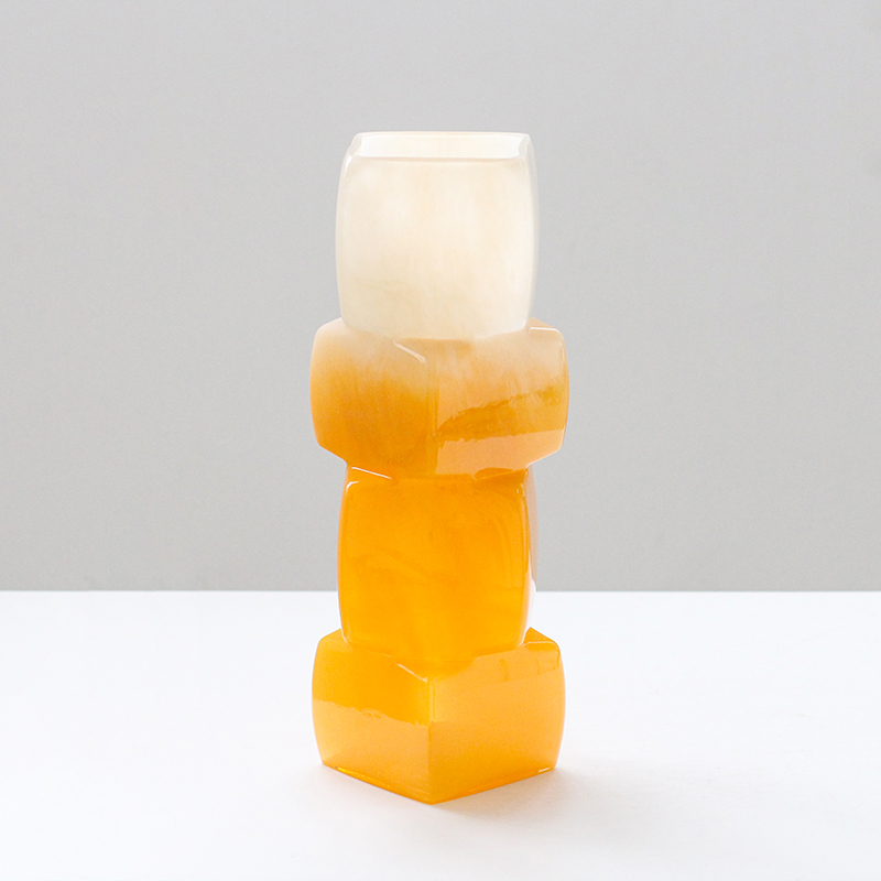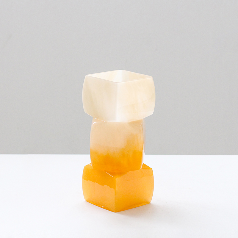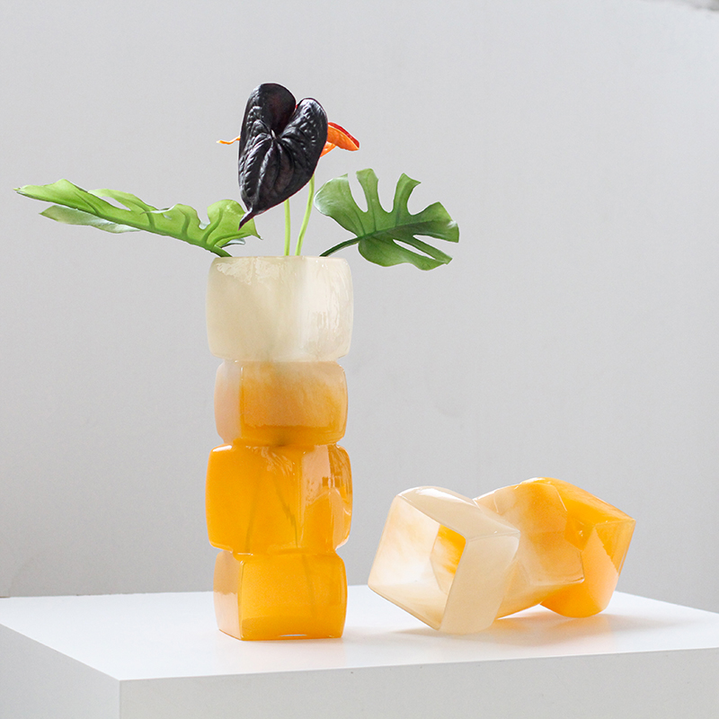 中古风渐变阳光橘几何方块台面鲜花花瓶餐桌软装酒店电视柜装饰品