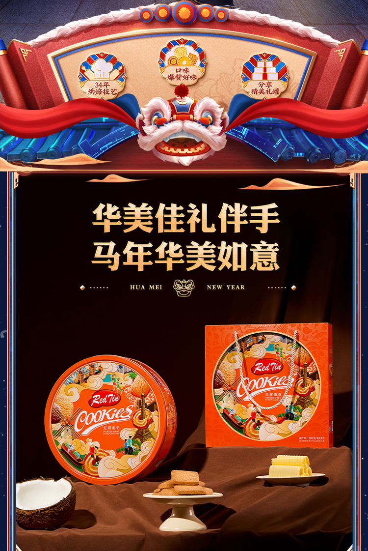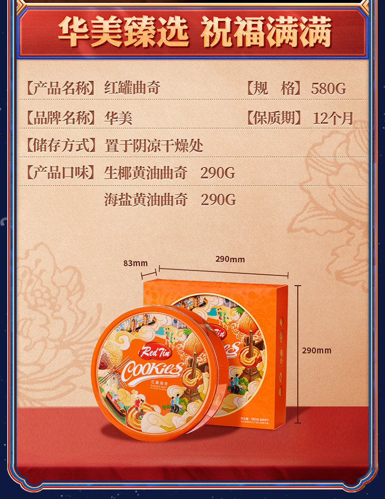 华美红罐曲奇580g