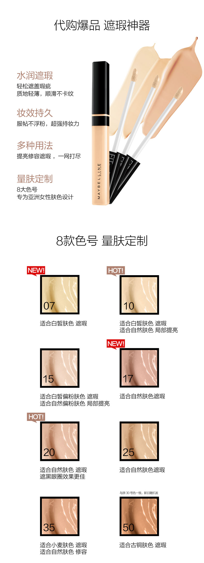 美宝莲fitme定制遮瑕笔遮点遮盖黑眼圈脸部痘印修容提亮遮瑕膏JPY带授权招加盟代理