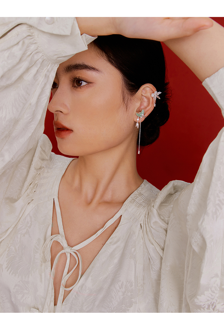 ZEGL设计师清冷玉洁耳妆盘耳环女小众设计感高级东陵玉新中式耳饰