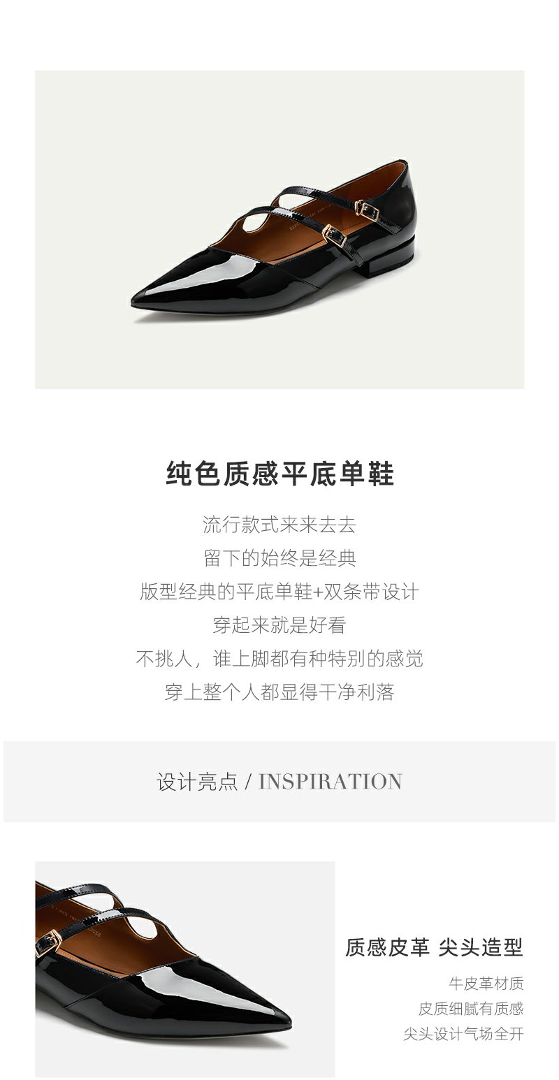 westory22年新款纯色平底尖头真皮百搭小众设计单鞋小皮鞋女72521