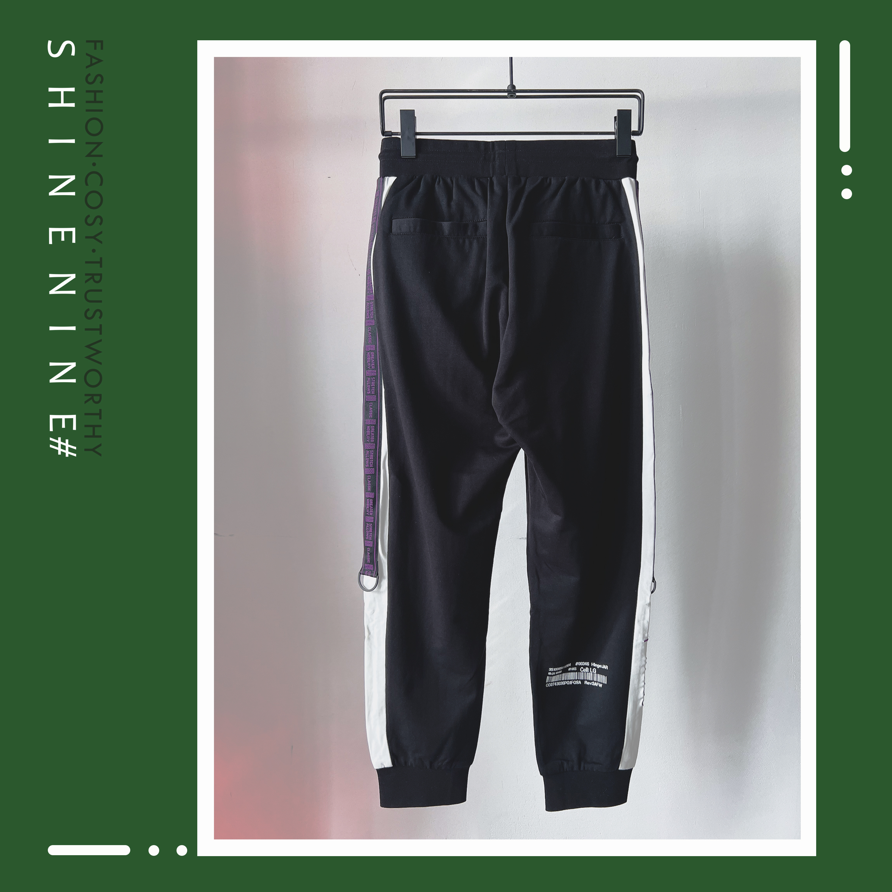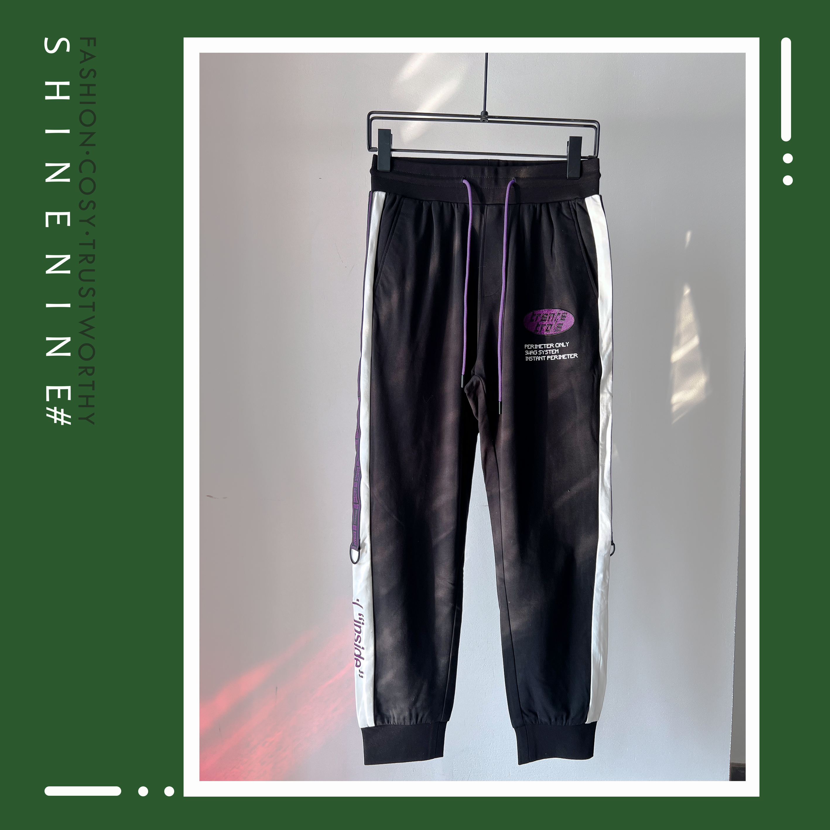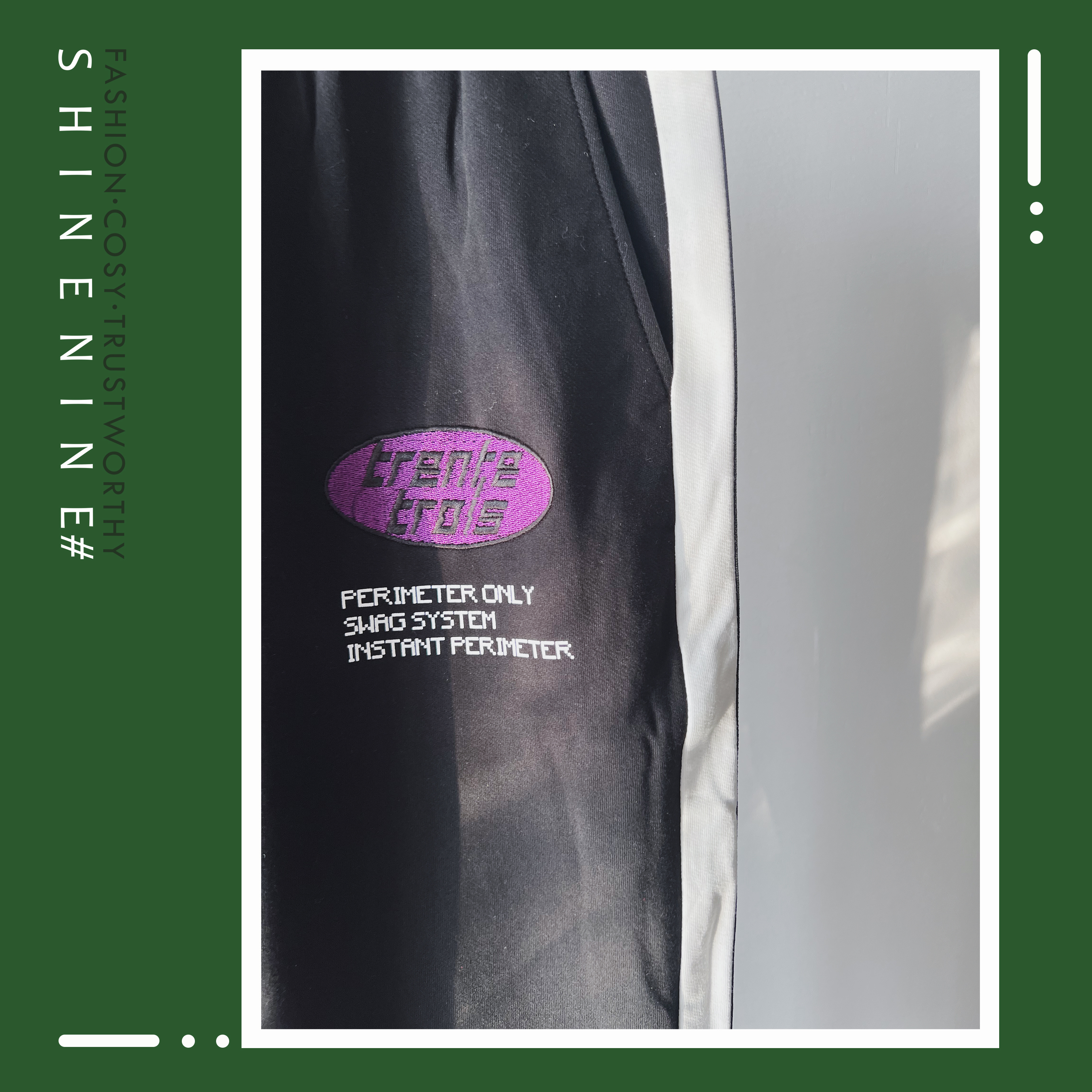 B912332114潮流拼接字母刺绣束脚休闲裤
