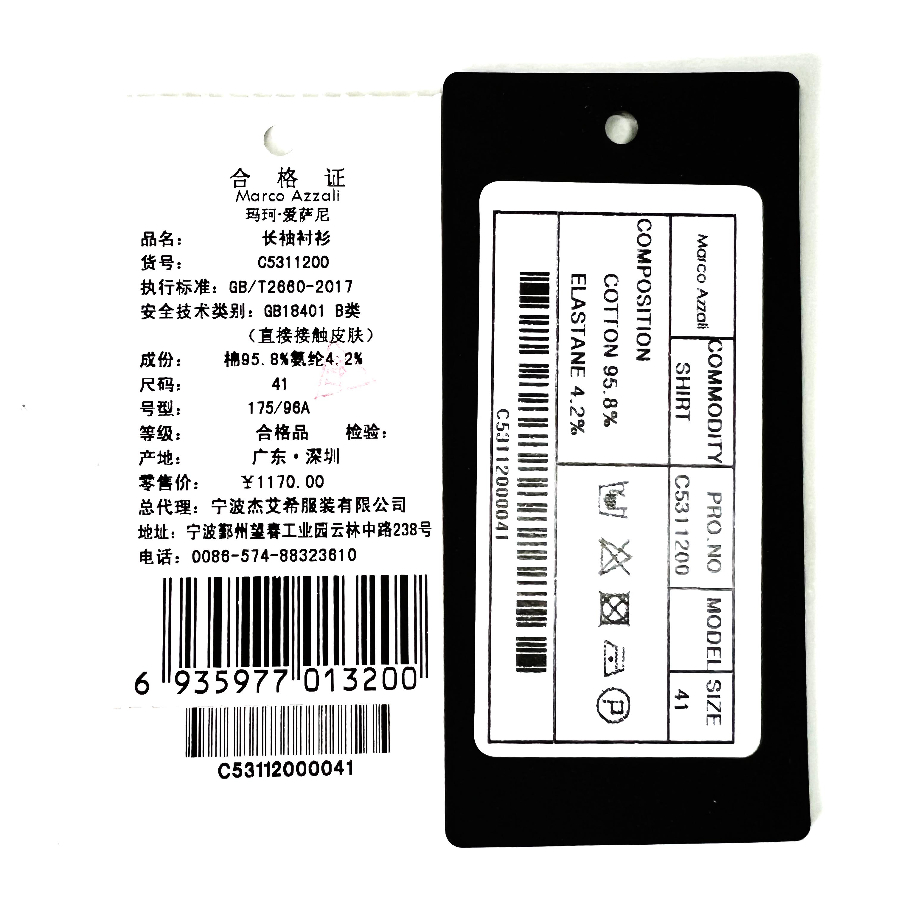 Marco Azzali长袖衬衫 C5311200