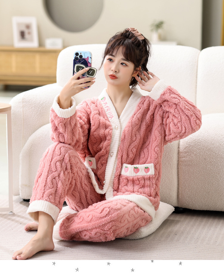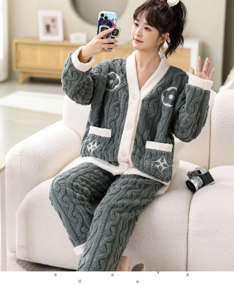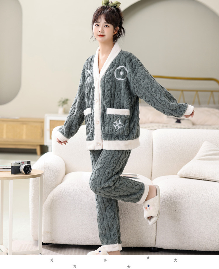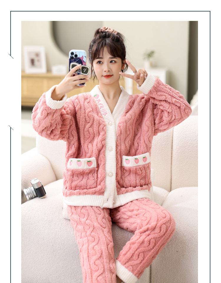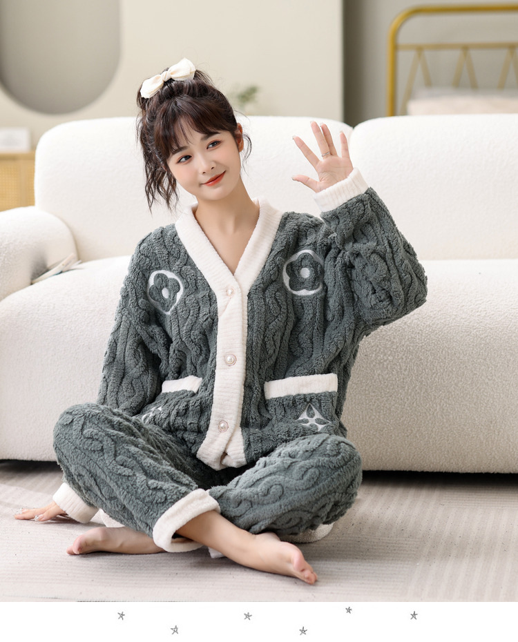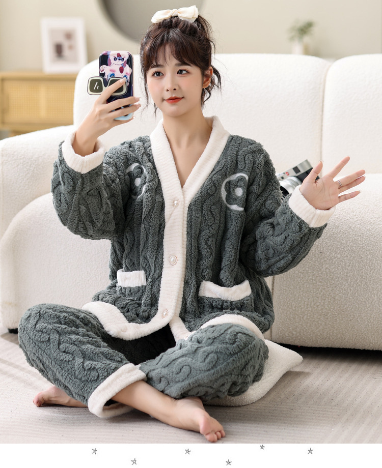 希燕茵珊瑚绒睡衣秋冬女学生可爱家居服套装法兰绒可外穿保暖加厚保暖XY0005★