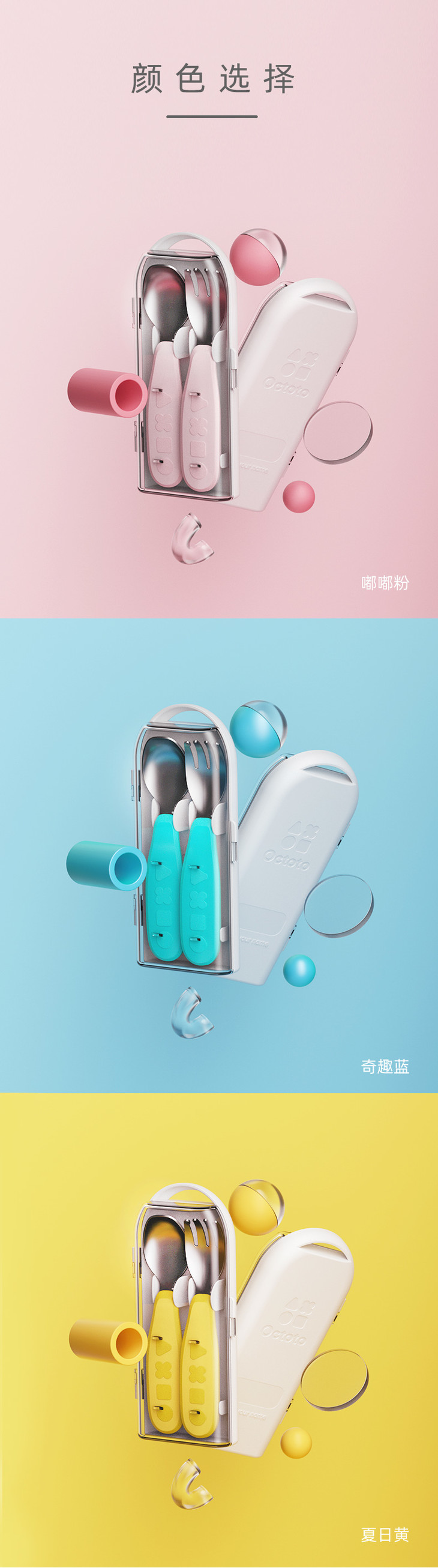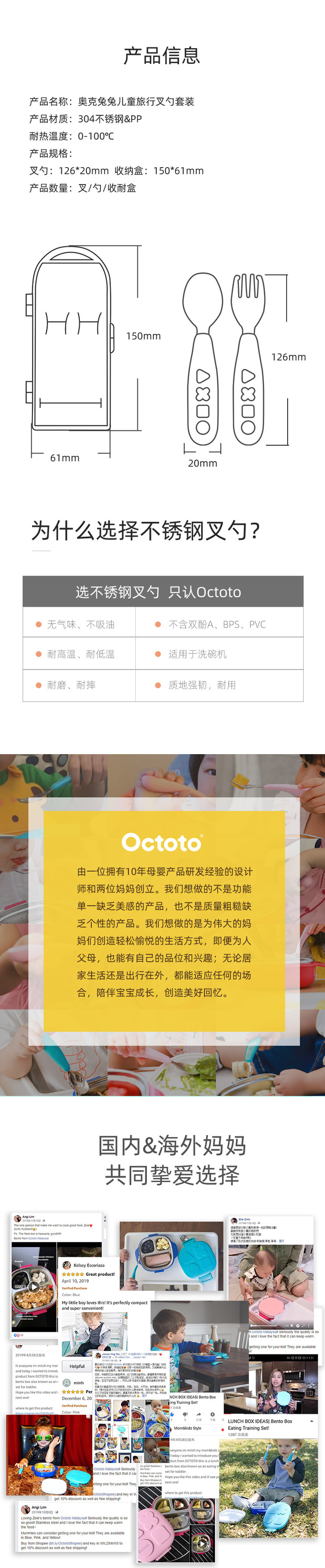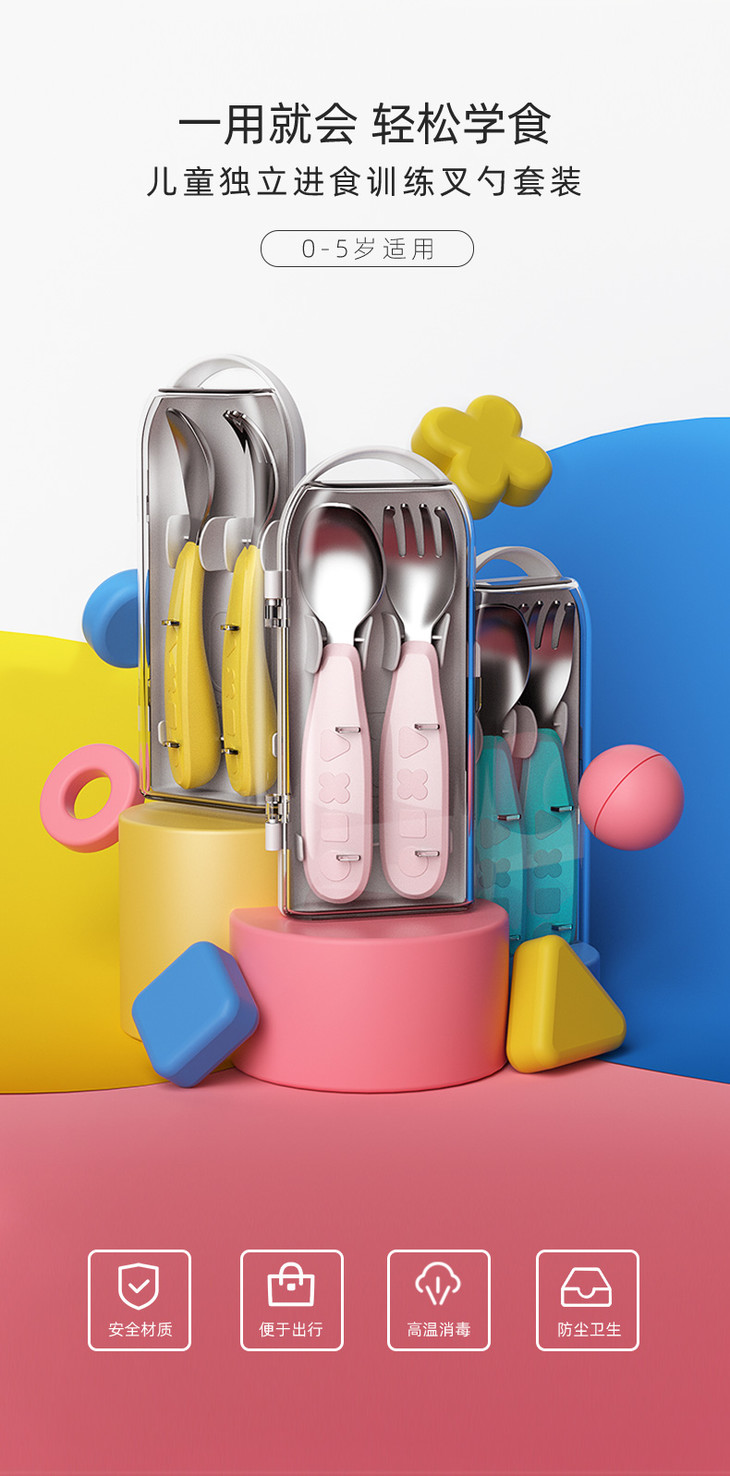 【双十一特价】octoto儿童不锈钢勺子叉子套装宝宝学吃饭训练饭勺便携辅食勺餐具