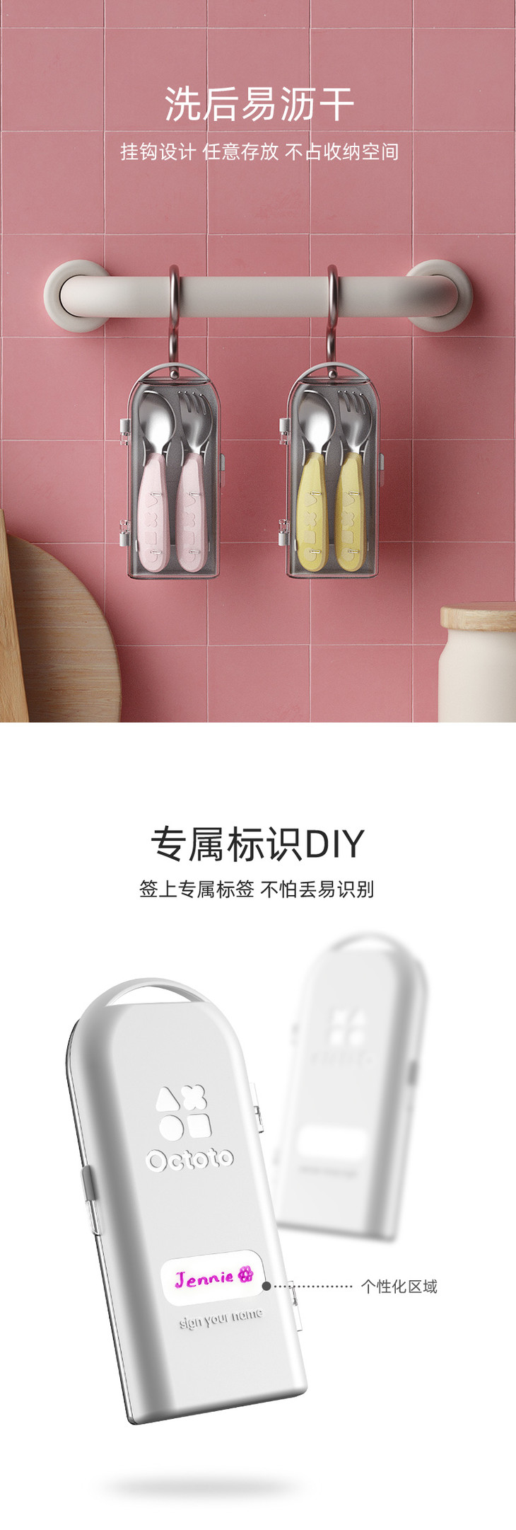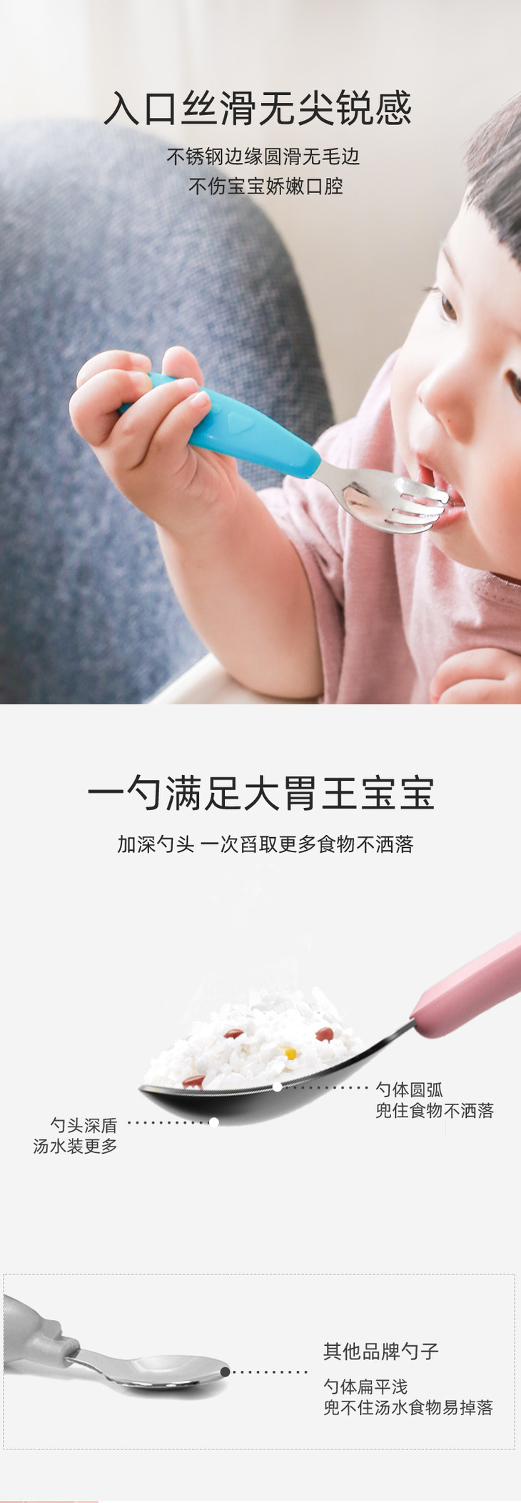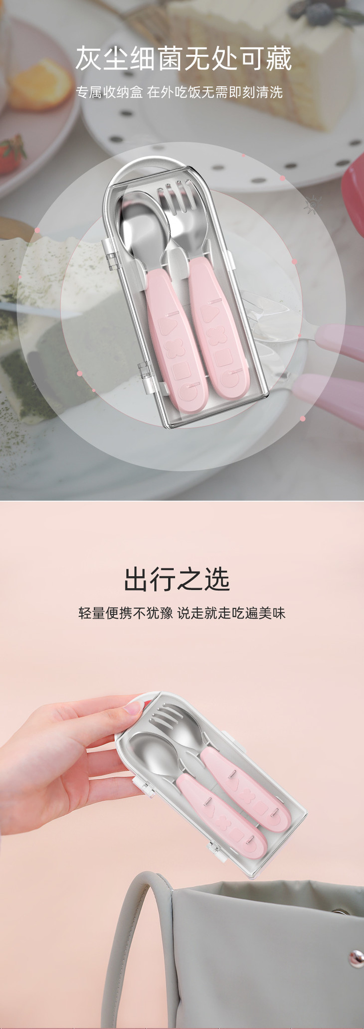 【双十一特价】octoto儿童不锈钢勺子叉子套装宝宝学吃饭训练饭勺便携辅食勺餐具