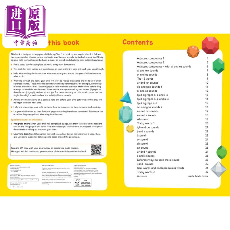 这本 Phonics 练习册将有用的英语练习与引人入胜的彩色插图相结合,有助于增强孩子的自信心,培养终身良好的学习习惯。每个有趣的活动都能让您的孩子获得真正的成就感。