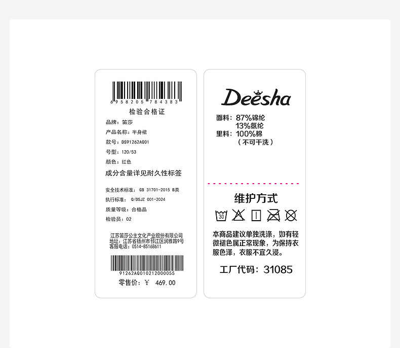 笛莎Deesha 2026年夏季新款中童女童休闲中短裤半身裙