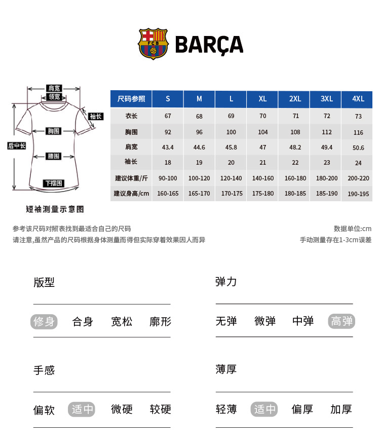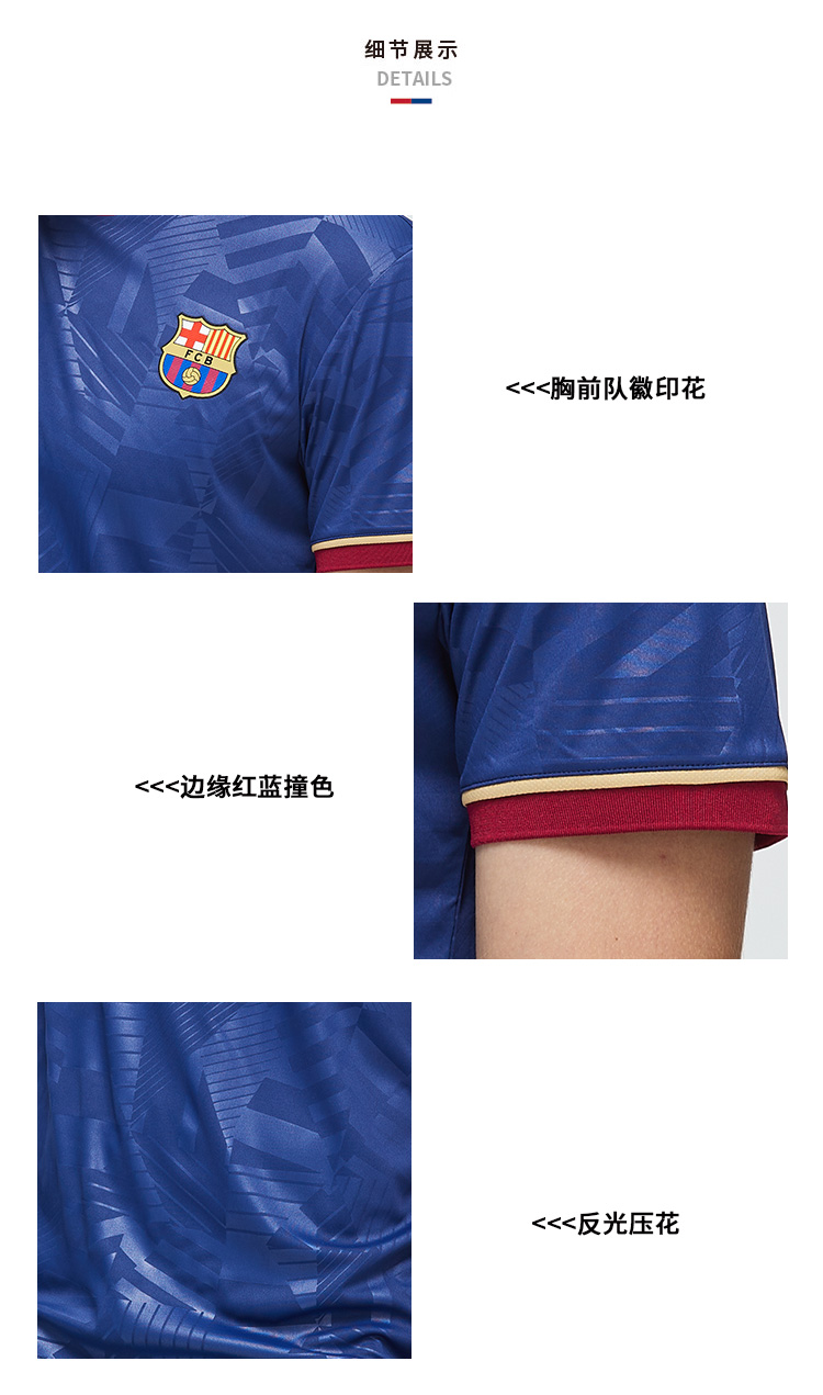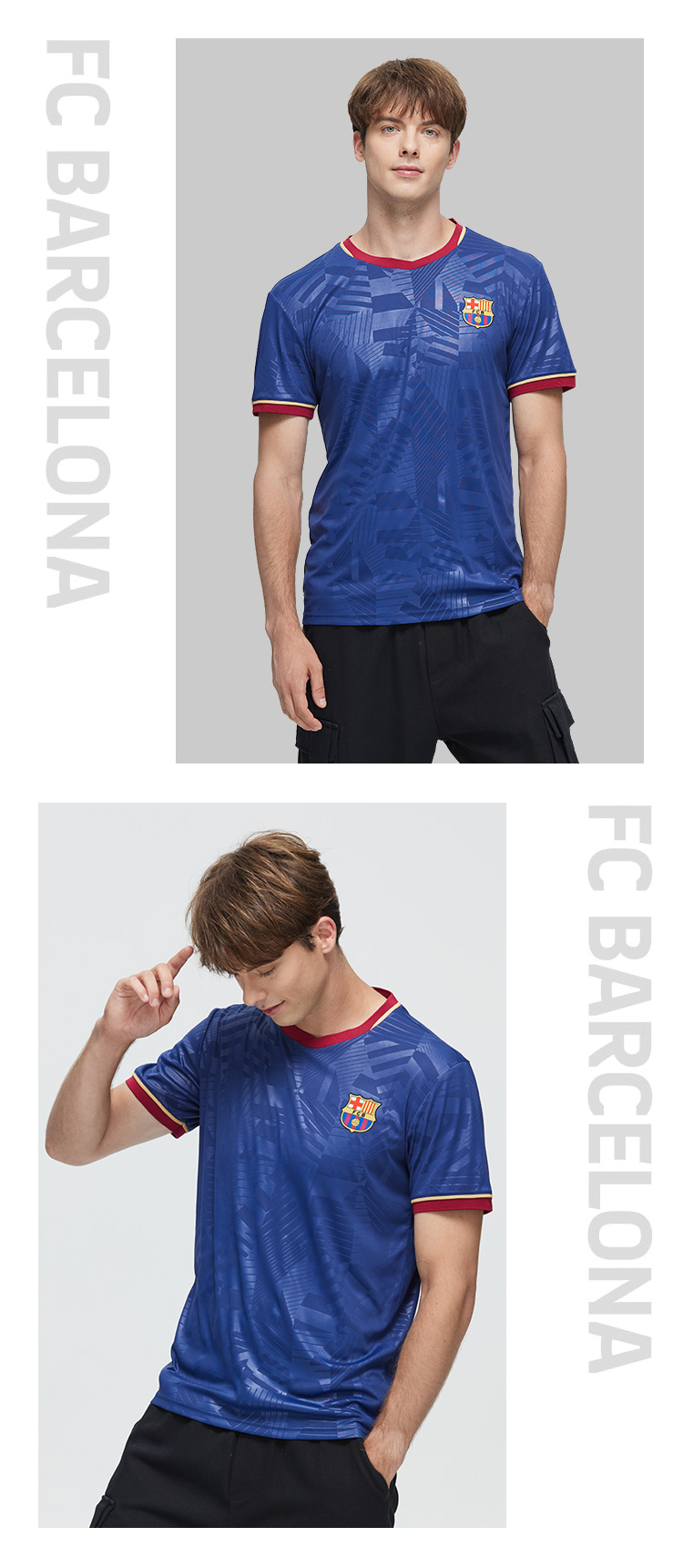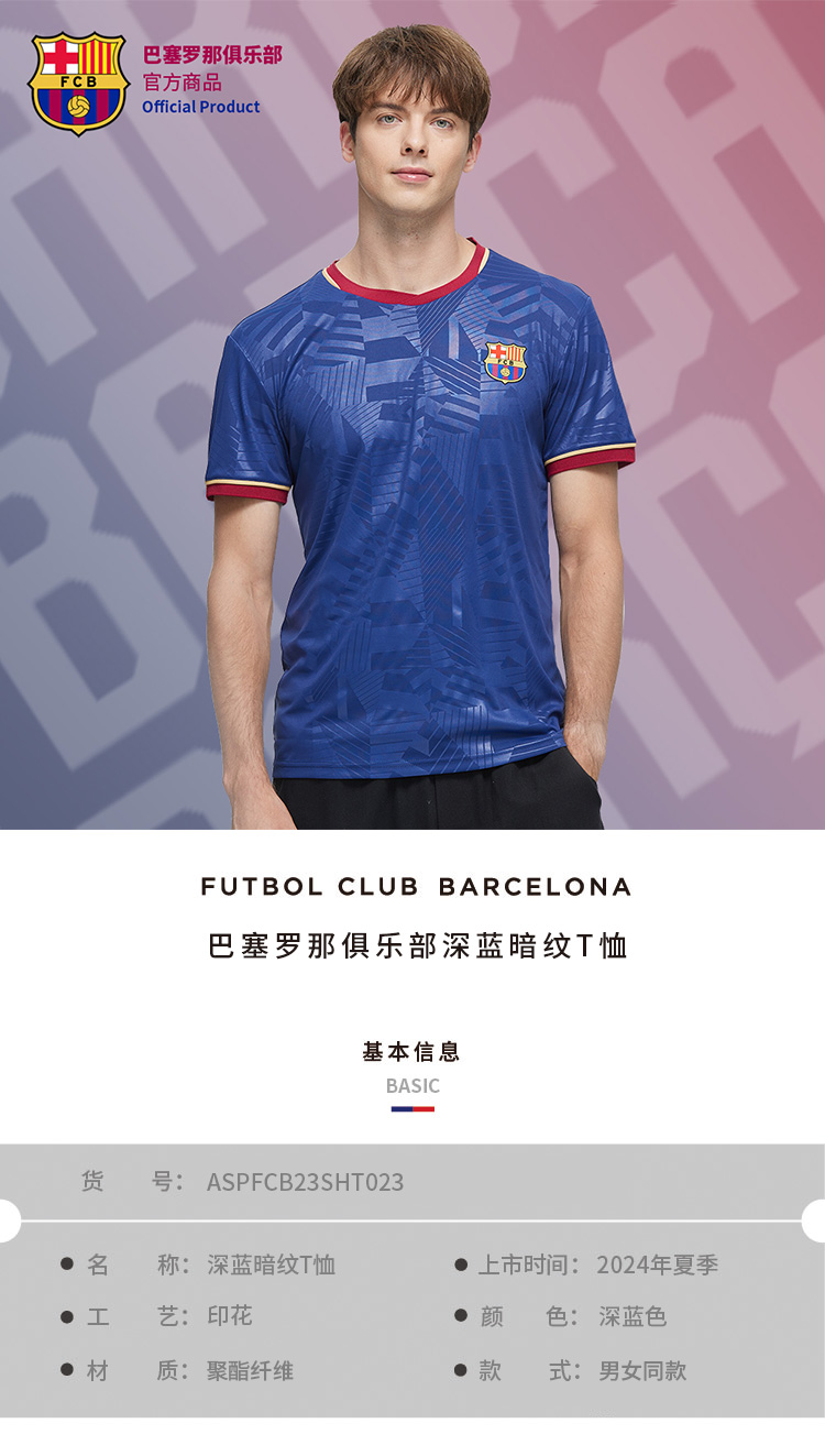 【官方正版】巴塞罗那俱乐部 | 巴萨深蓝暗纹T恤球迷周边纪念短袖
