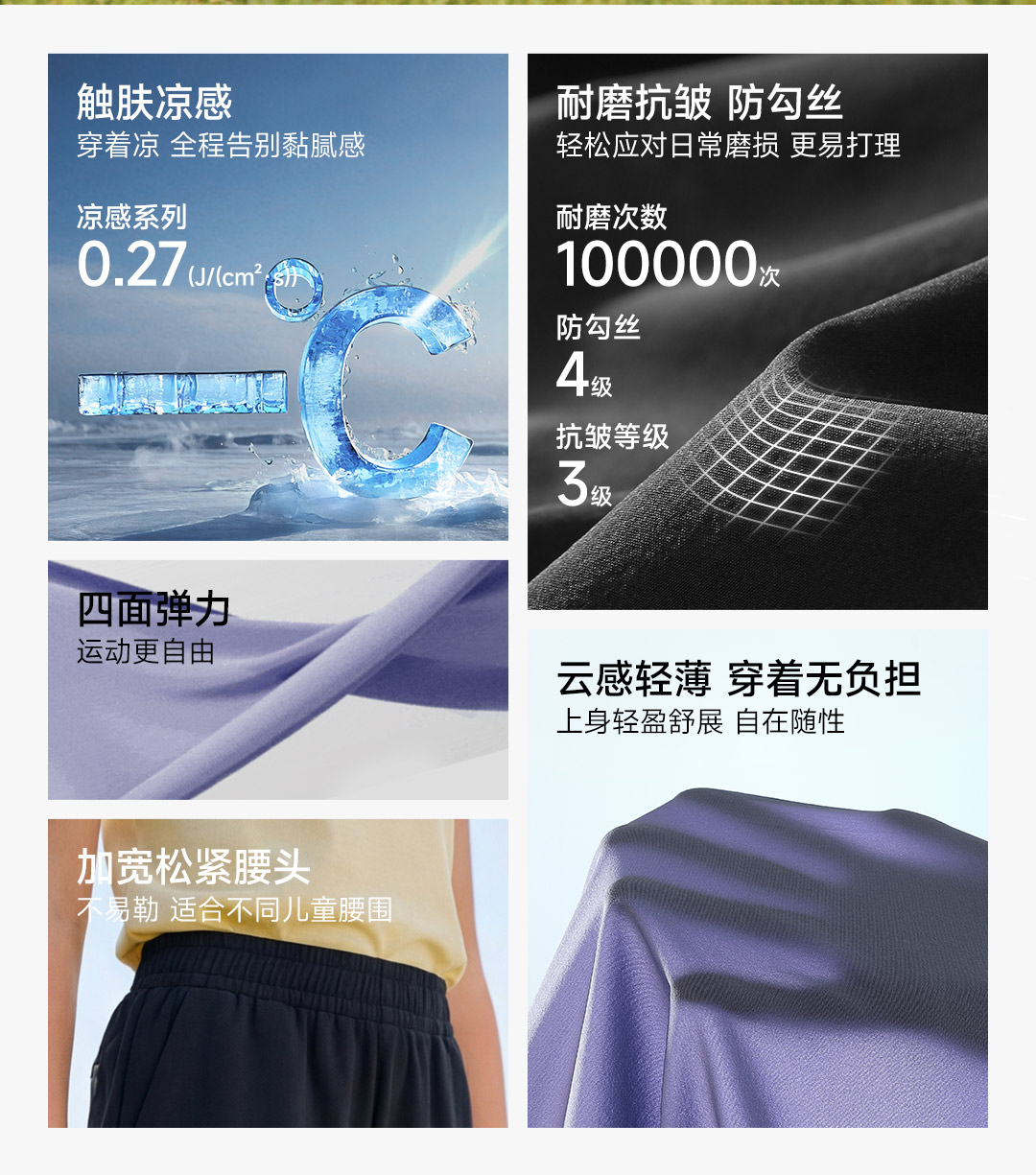 素湃Supield凉感轻薄儿童自由裤夏季户外休闲裤男童女童运动夏裤