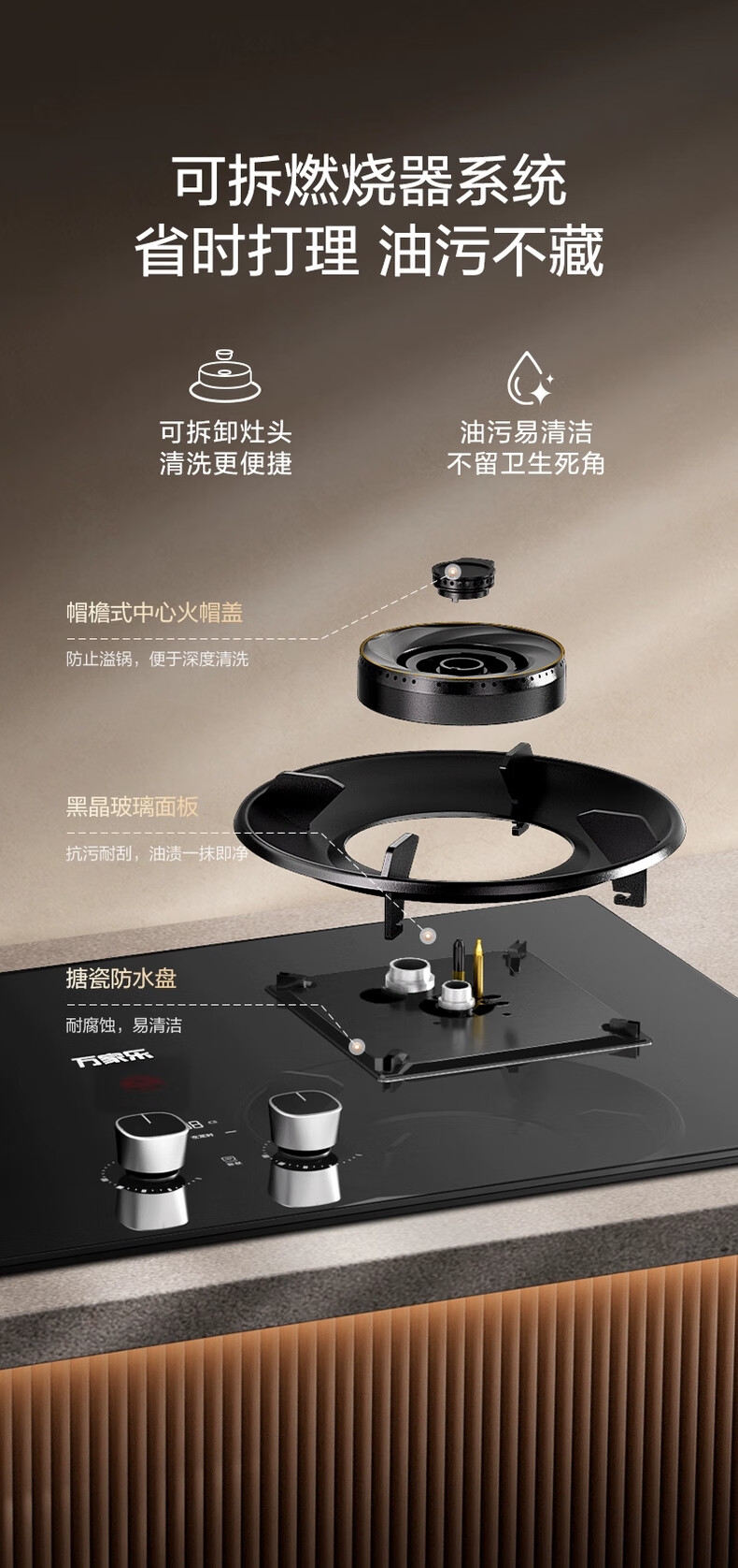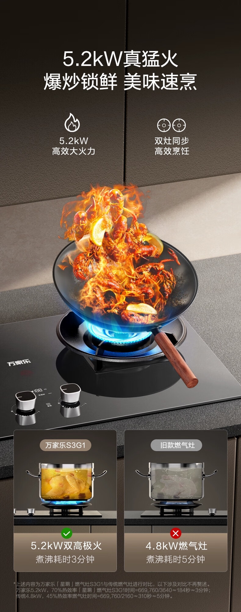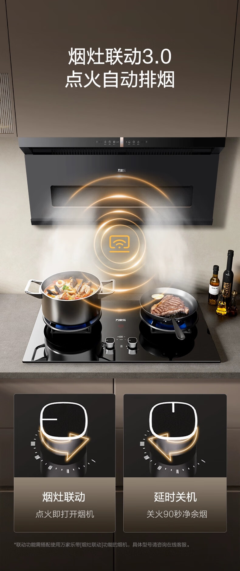 万家乐定时灶燃气灶天然气烟灶联动一级能效5.2KW猛火双灶70%热效率S3G1 天然气12T (JZT-S3G1)
