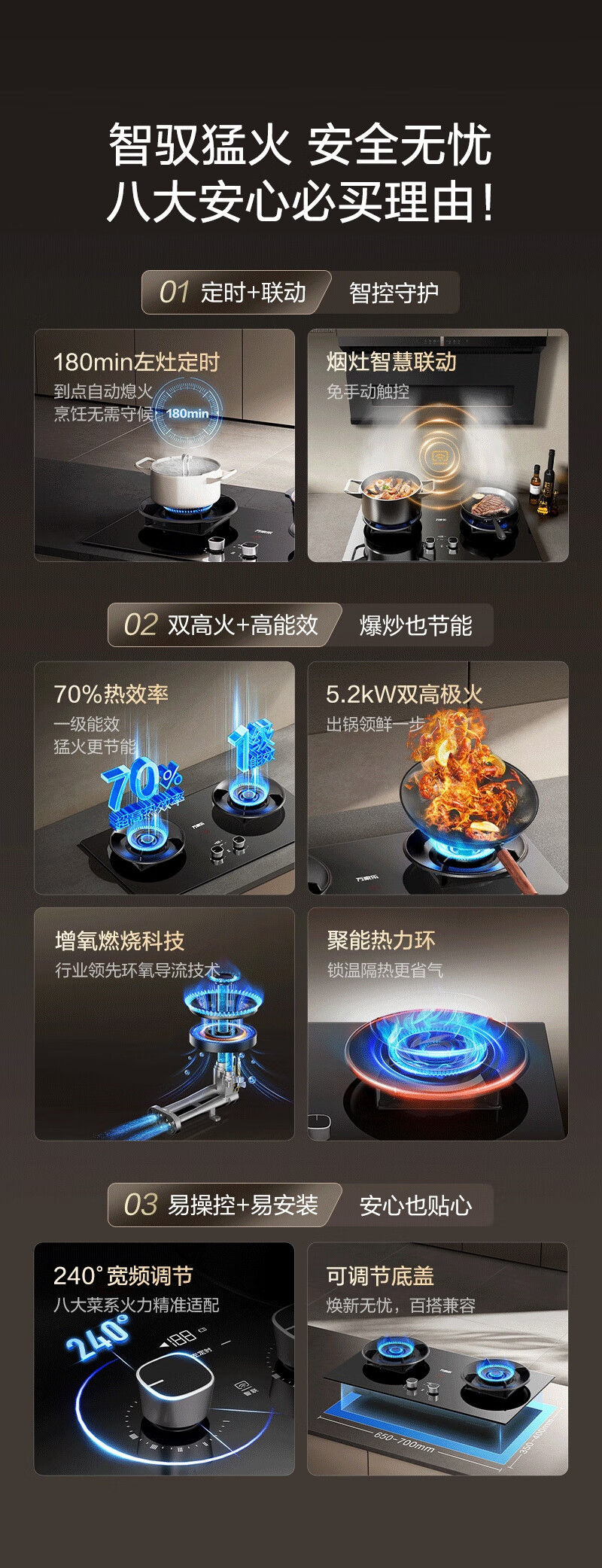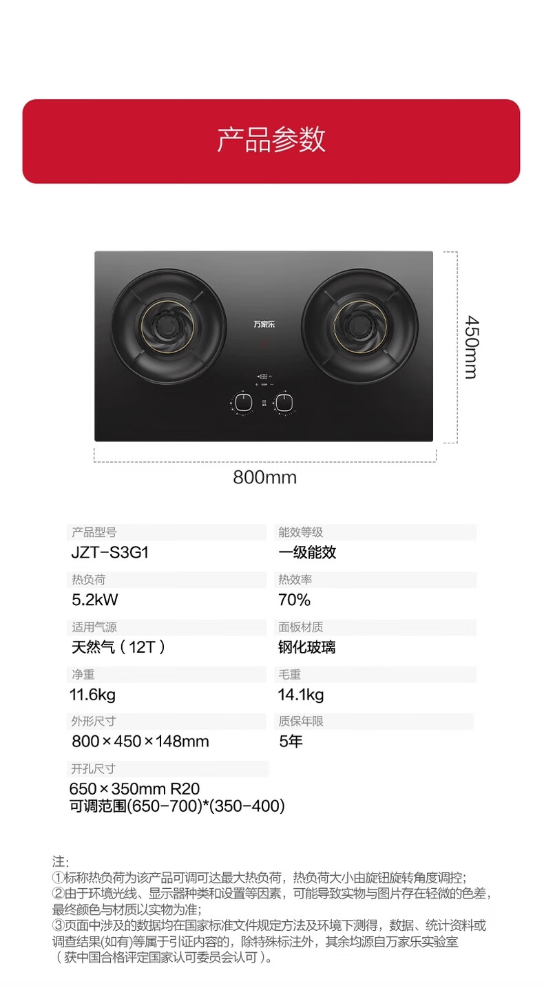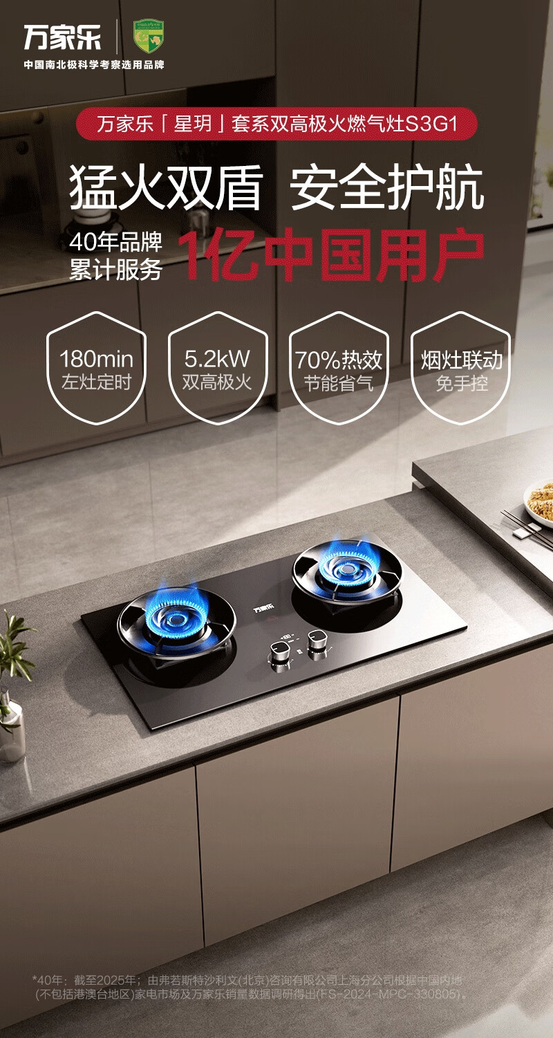 万家乐定时灶燃气灶天然气烟灶联动一级能效5.2KW猛火双灶70%热效率S3G1 天然气12T (JZT-S3G1)