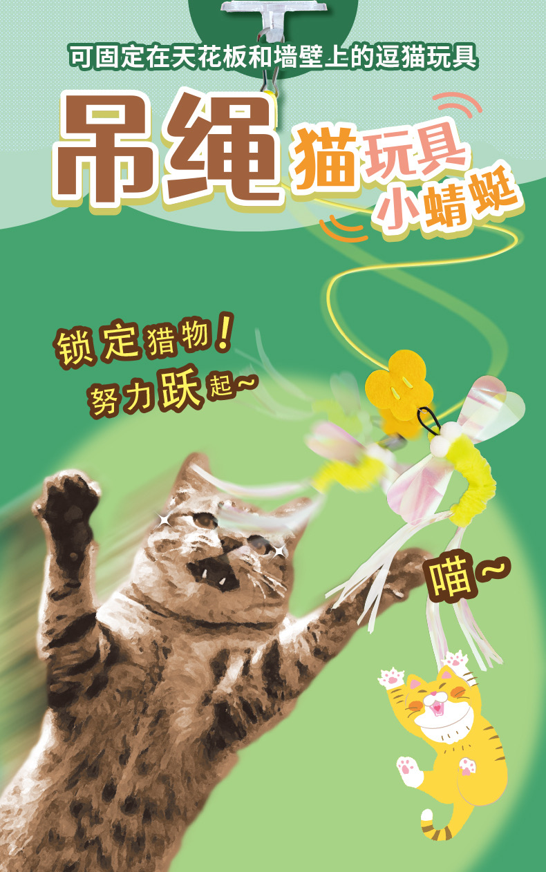 多格漫猫咪吊绳蜻蜓玩具 猫咪自嗨玩具 自由悬挂 偏远地区勿拍