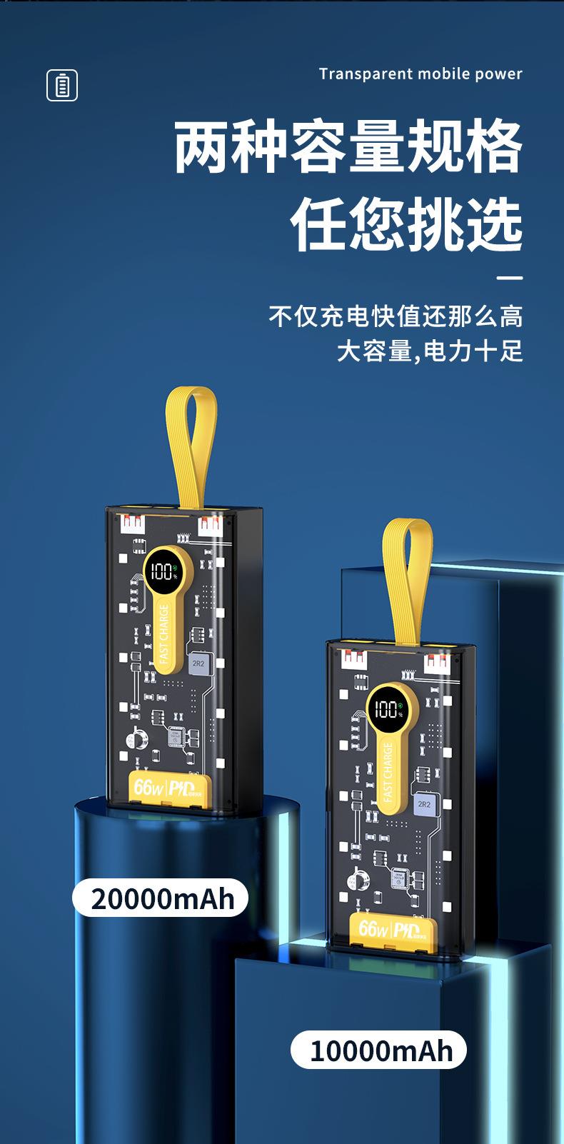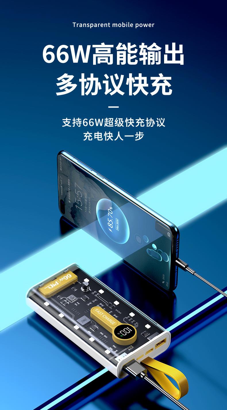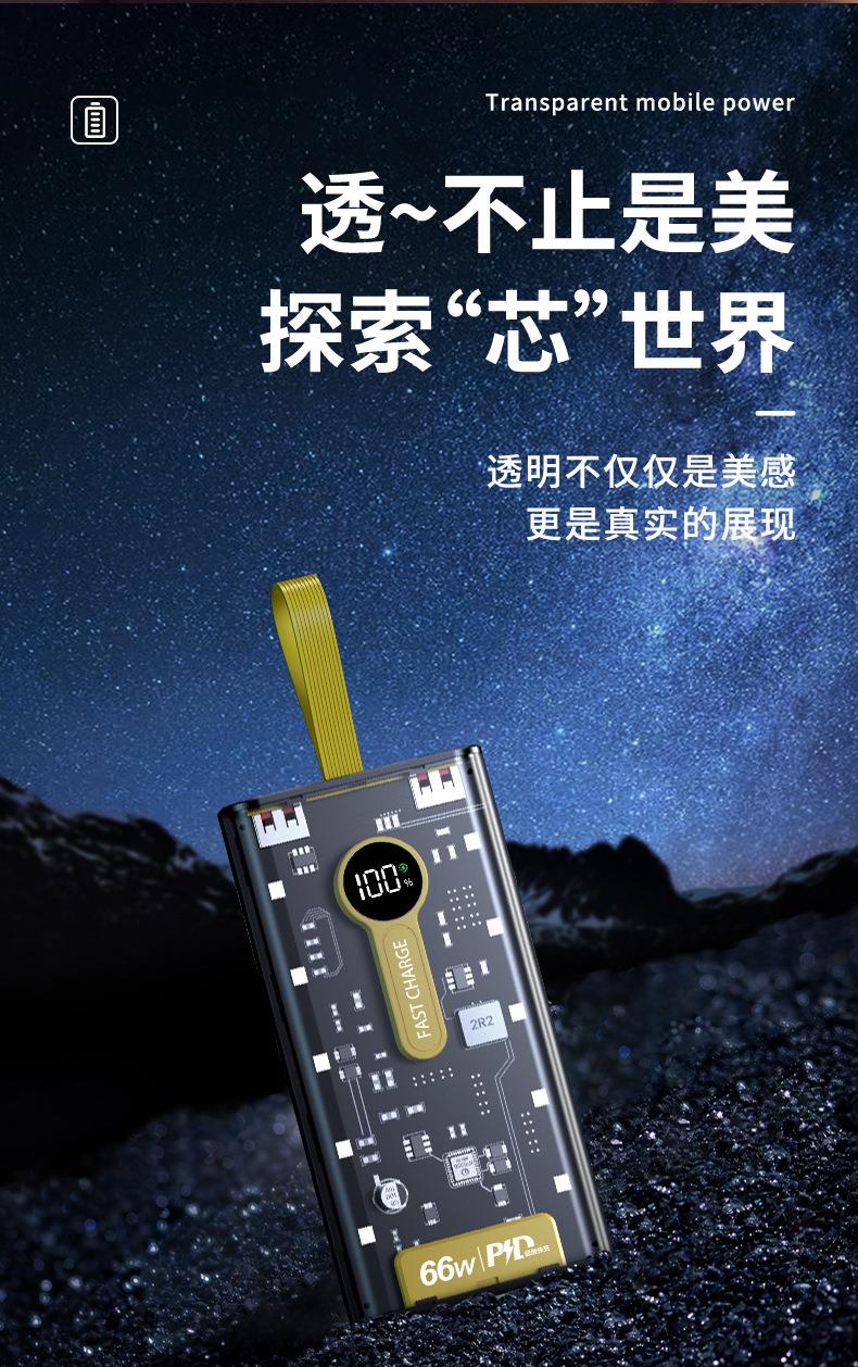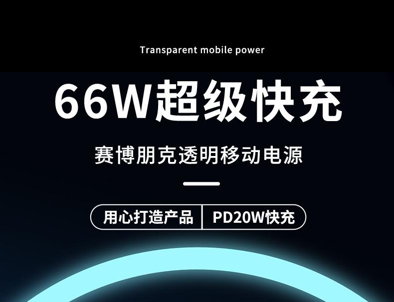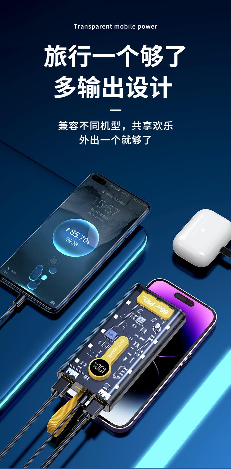 66W超级快充电宝10000mAh夜灯数显朋克风透明20000大容量移动电源
