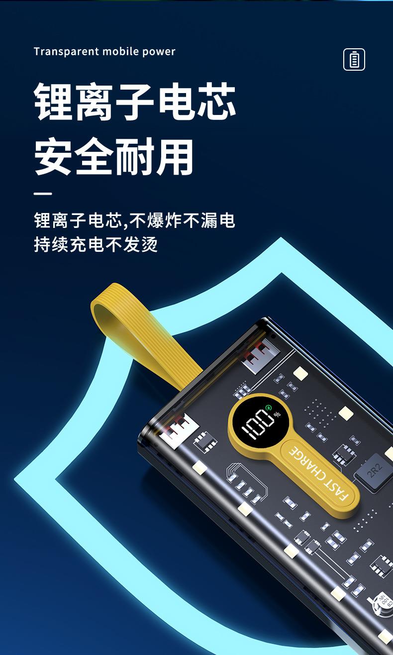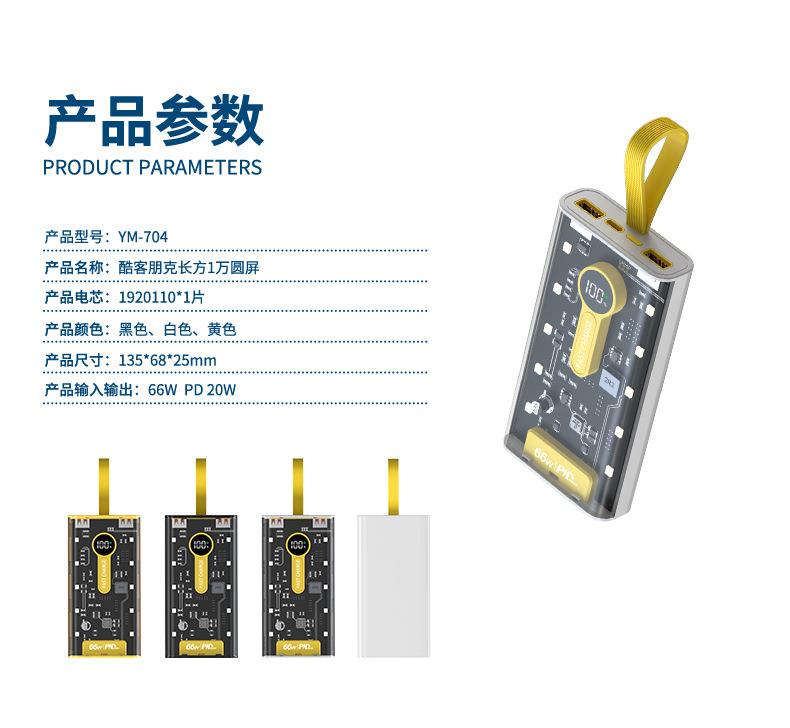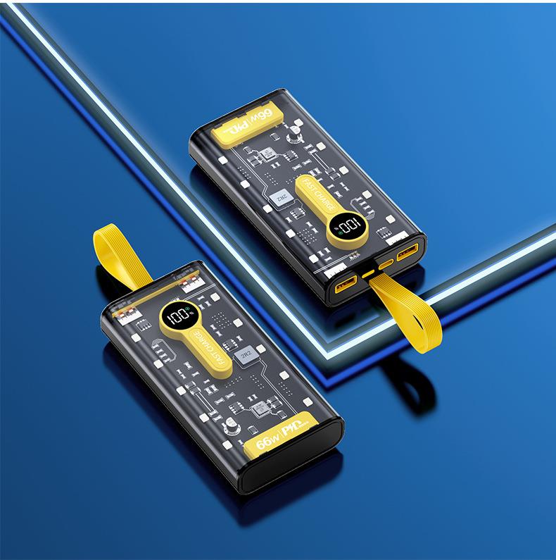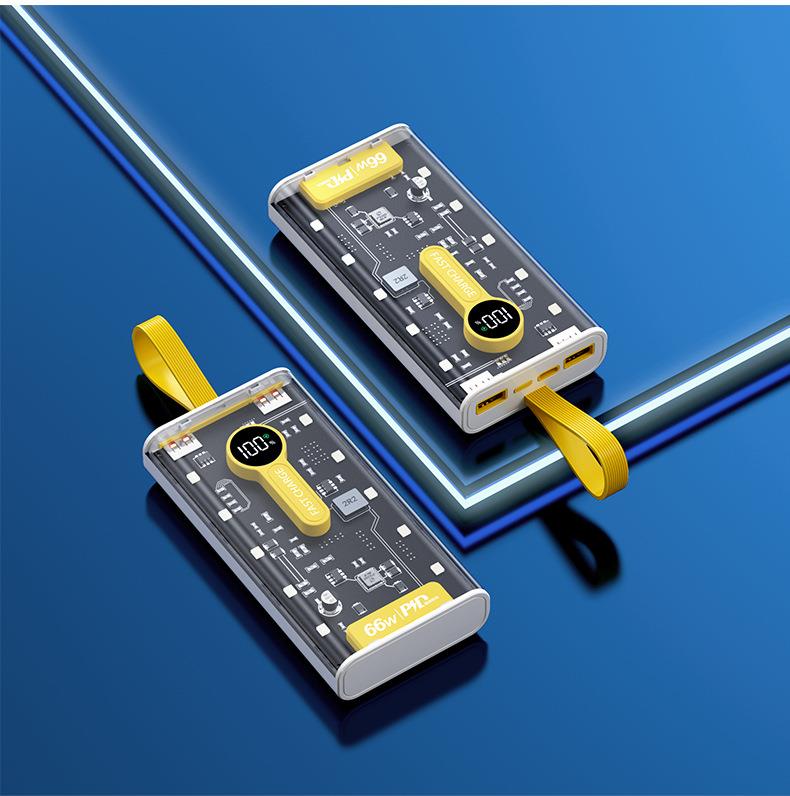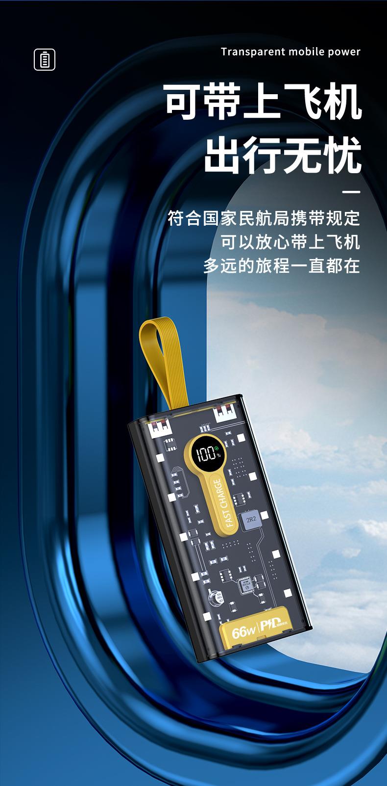 66W超级快充电宝10000mAh夜灯数显朋克风透明20000大容量移动电源