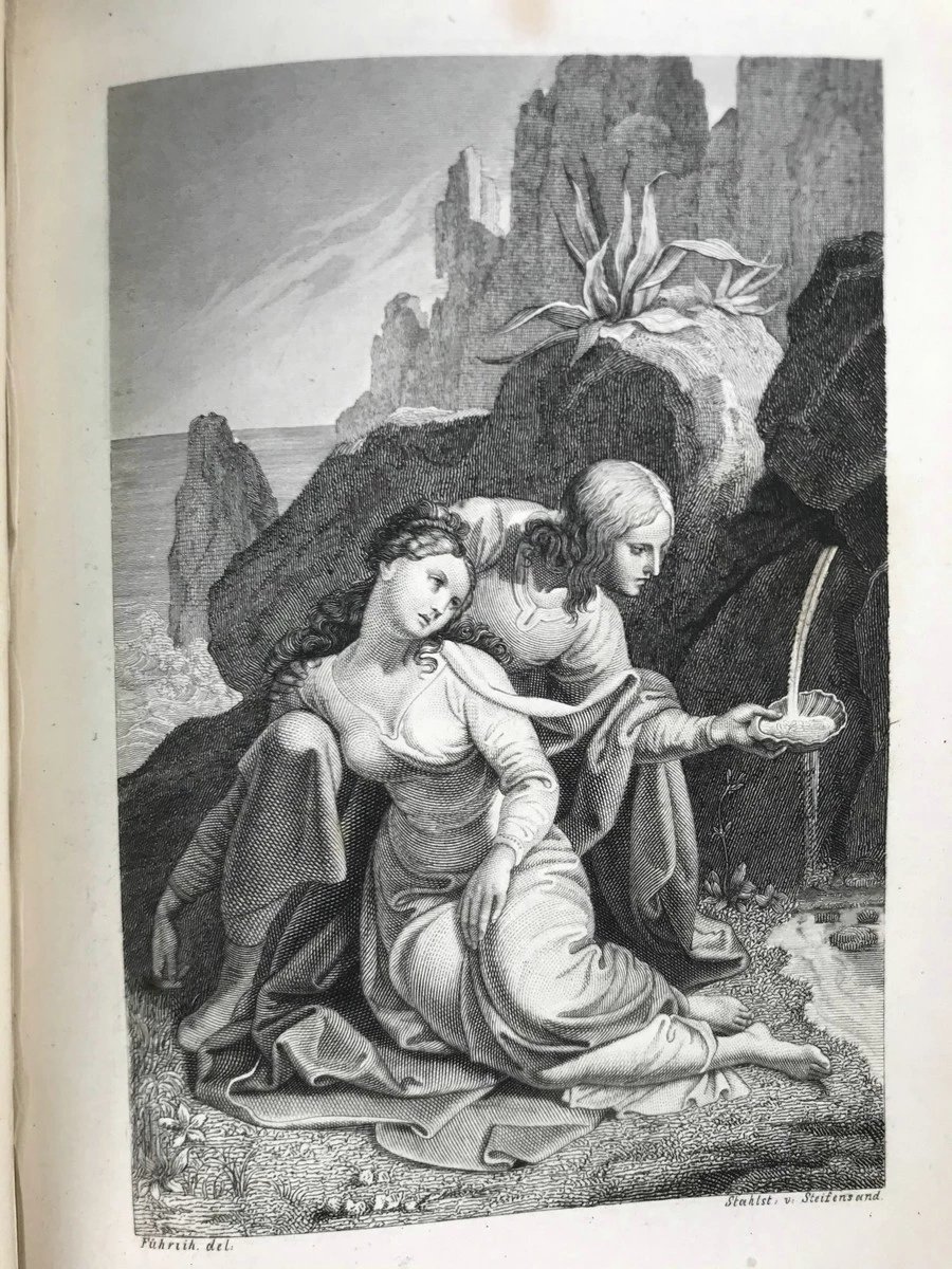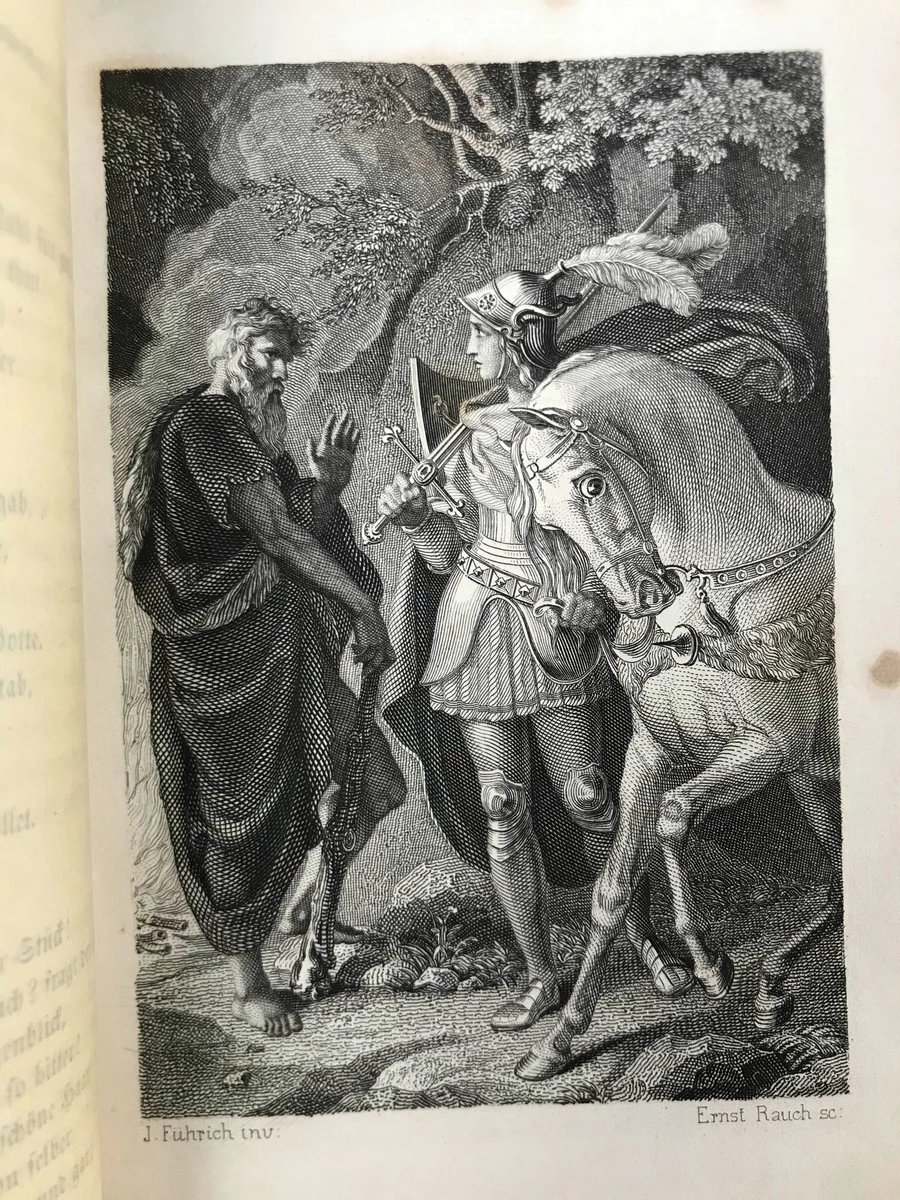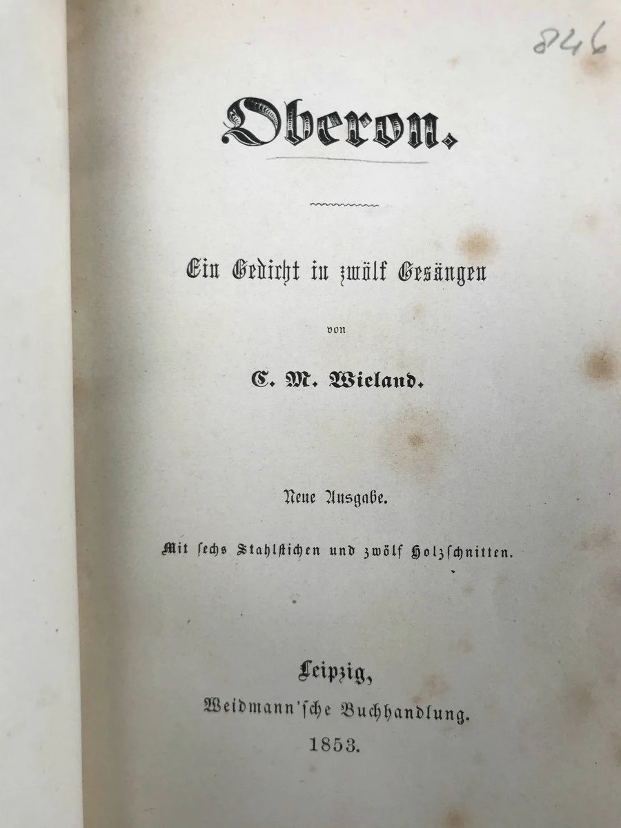 【德语】1853年 克里斯多夫·马丁·维兰德史诗《奥伯龙》 5幅整页版画插图 真皮精装64开