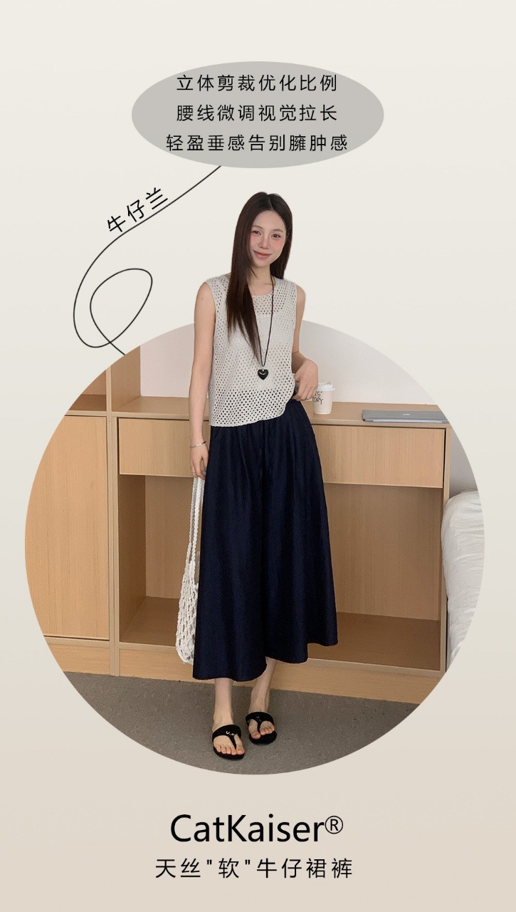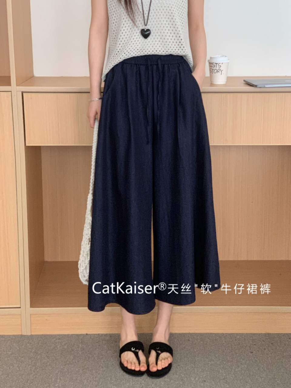 CatKaiser天丝牛仔裙裤2025夏季新款宽松遮肉显瘦A字阔腿休闲裤女