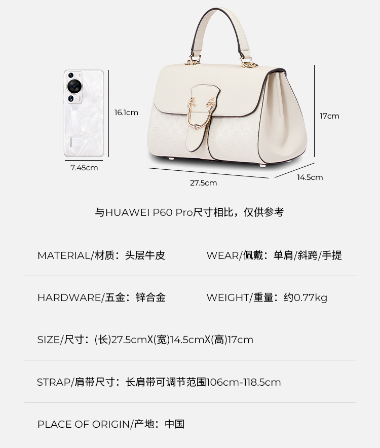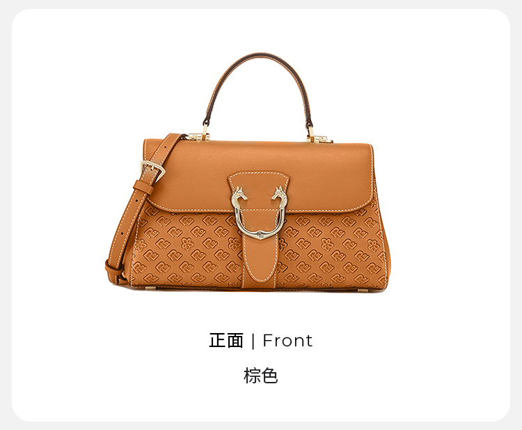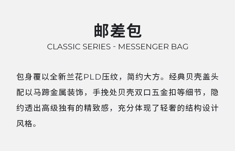保兰德PLD东方雅奢经典系列45度老花压纹头层牛皮邮差包通勤必备女包