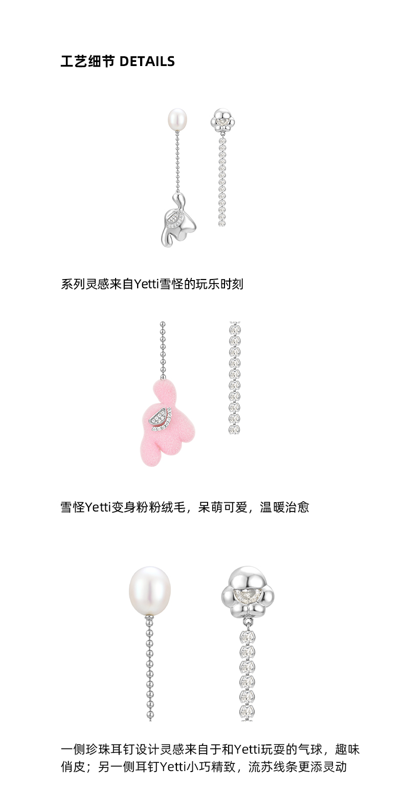 lost in echo原创设计师款Yetti玩气球AB不对称珍珠流苏耳环耳钉