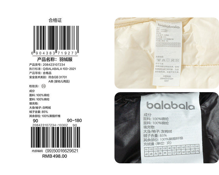 巴拉巴拉儿童羽绒服女童2023新款冬季男童宝宝童装外套保暖亲子装