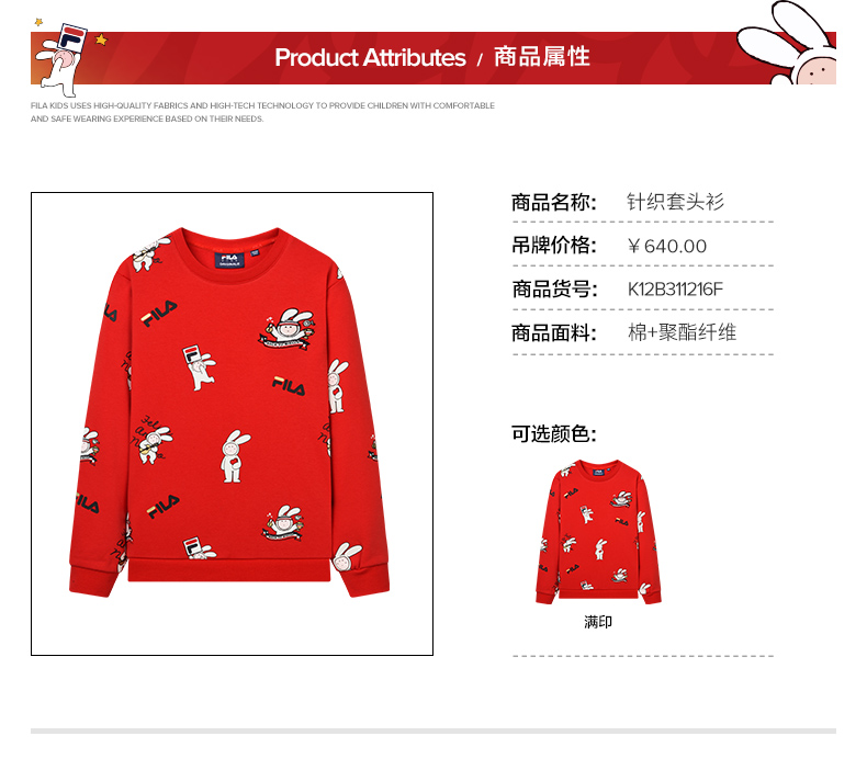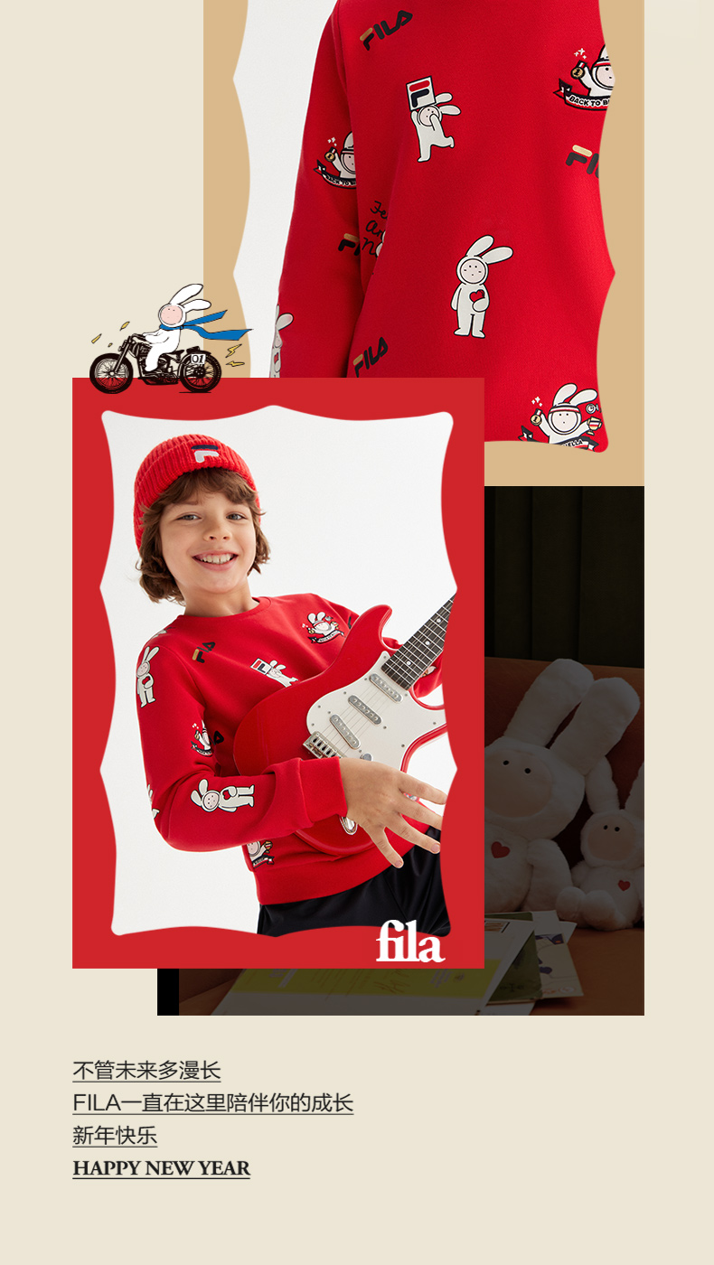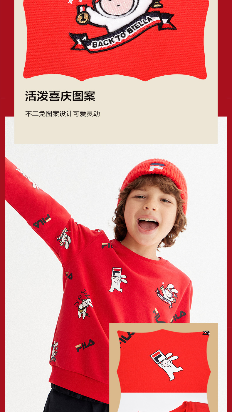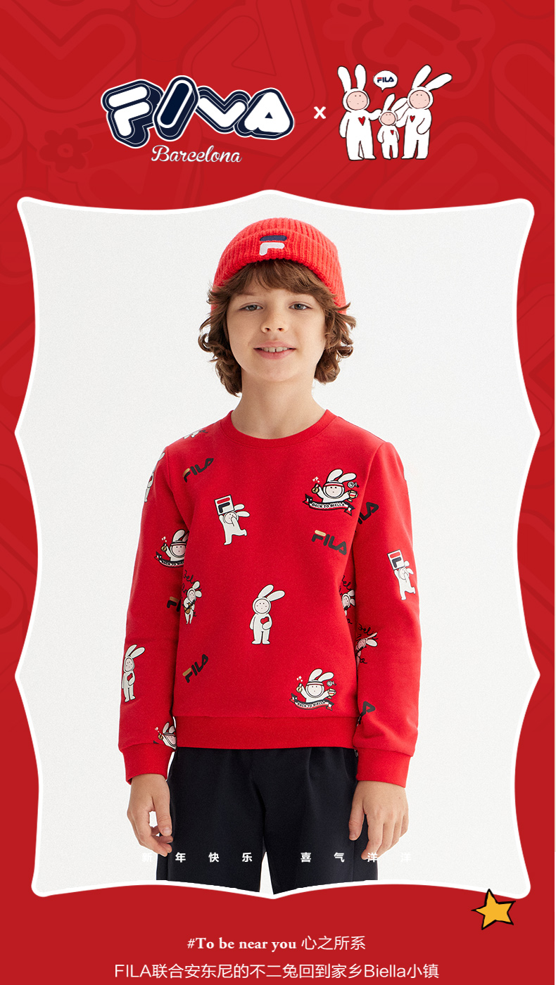 FILA斐乐安东尼不二兔卫衣男女情侣款2023春季休闲宽松新年款套头
