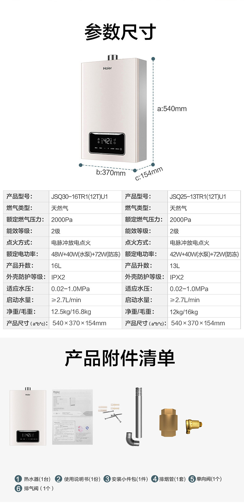 海尔(Haier)热水器JSQ30-16TR1(12T)U1零冷水