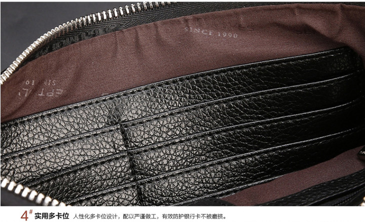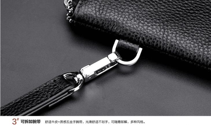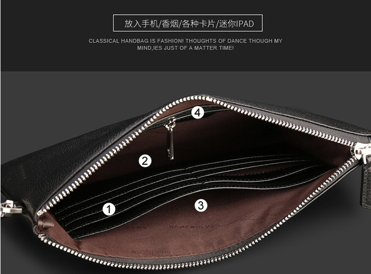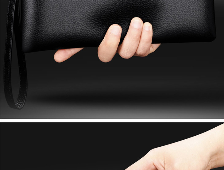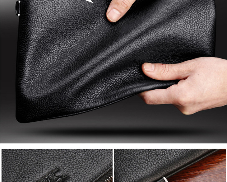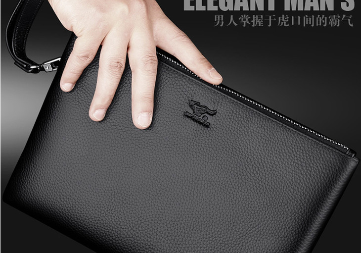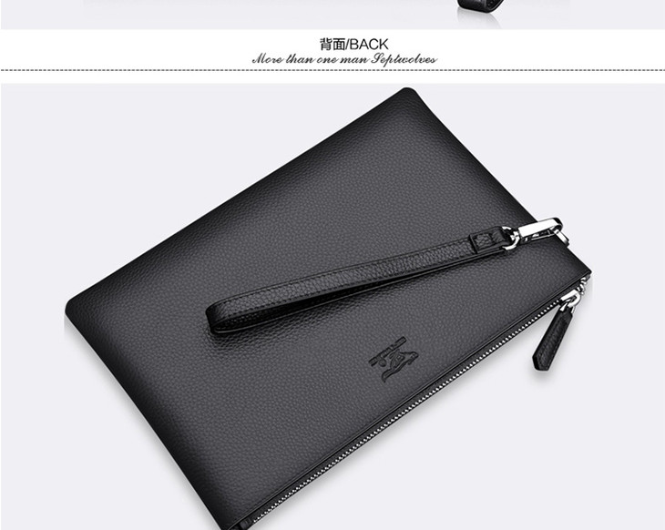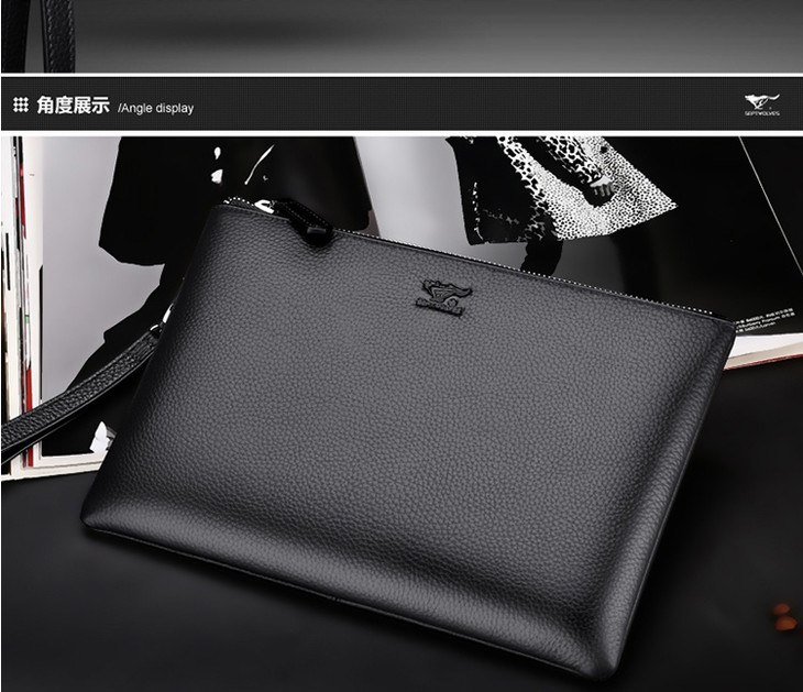 七匹狼男士手包大容量手抓包 头层牛皮时尚潮流男包手拿包信封包1A1172103-01大号黑色