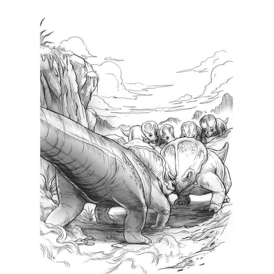 “勇士”是镰刀龙群中的一员,没出壳时,它就差点被窃蛋龙偷走;刚刚破壳,又突遇翼龙空袭;三岁,它在森林里迷路,被凶恶的临河盗龙群团团围住,“勇士”高举起自己的前臂怒砍临河盗龙首领“一只眼”;四岁,一场特大暴雨后,洪水滔滔来袭,“勇士”身陷巨浪,刚刚被妈妈紧紧抱住,却又瞬间失散……