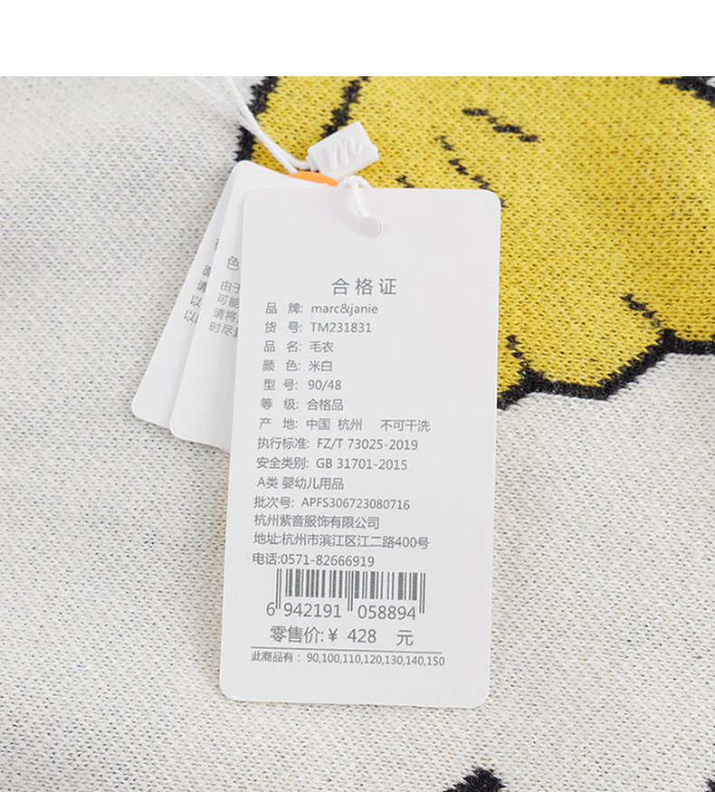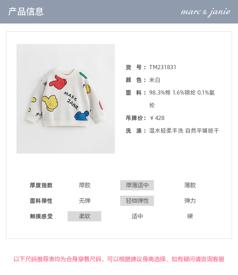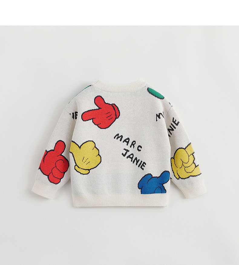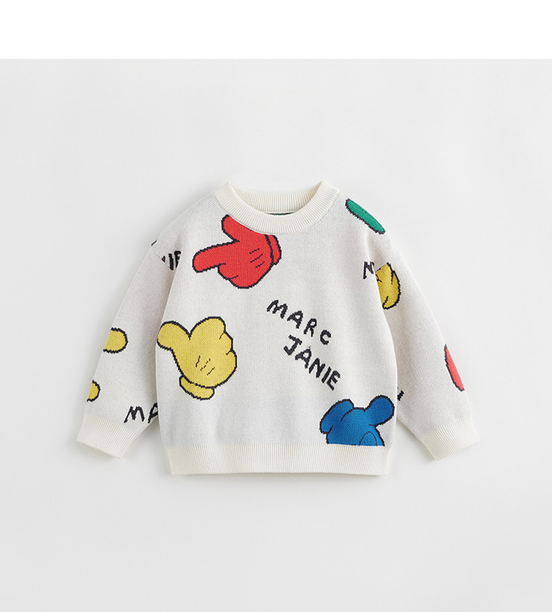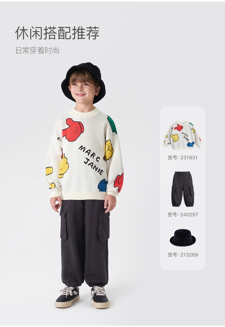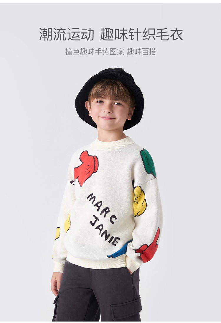 马克珍妮秋冬新款 男童儿童趣味提花圆领针织衫毛衣 231831