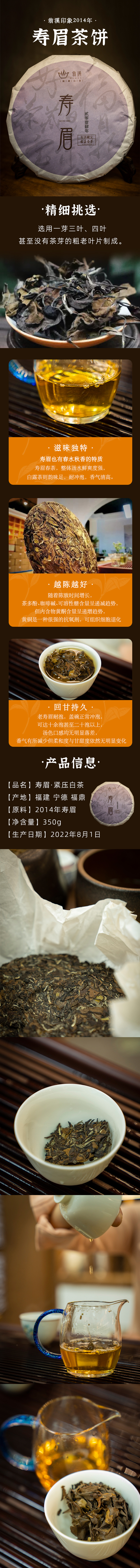 【板牙风物】翁溪印象2014年寿眉350g茶饼