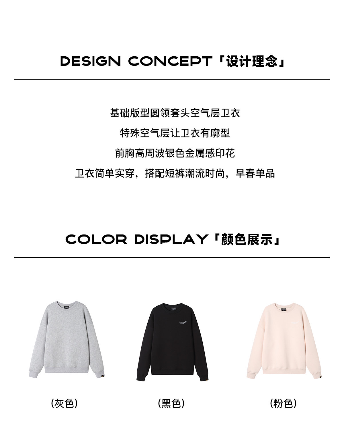 特!薛之谦的潮牌dsp* 纯元,宽松 廓形 空气层 面料 胸前金属感银标logo,简单 实穿,宽松 圆领 卫衣~