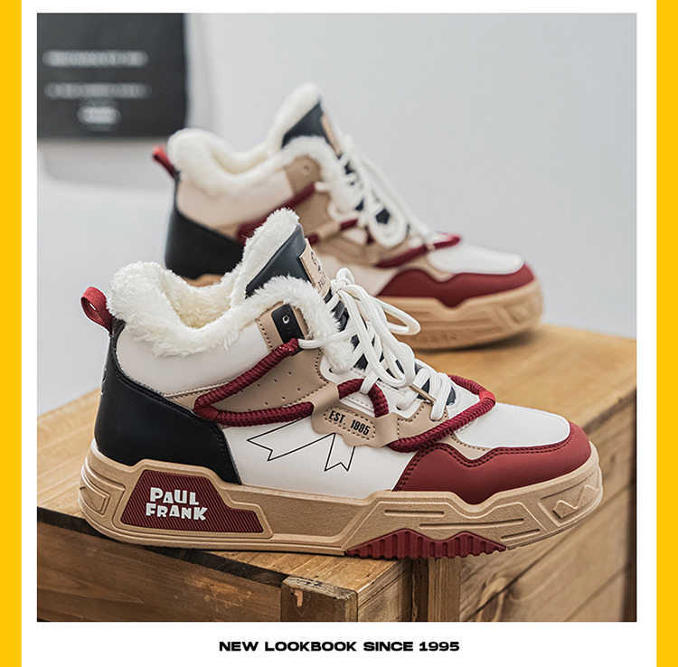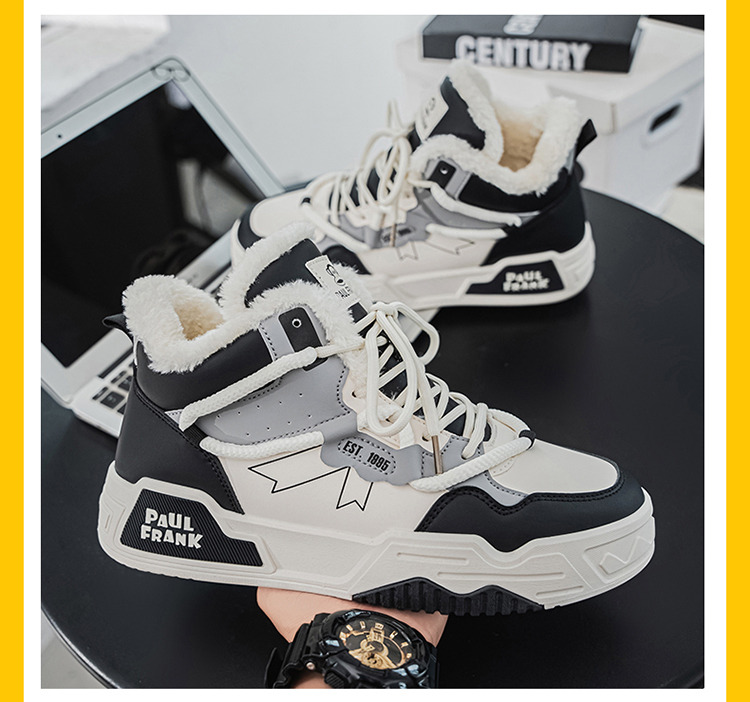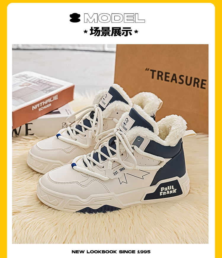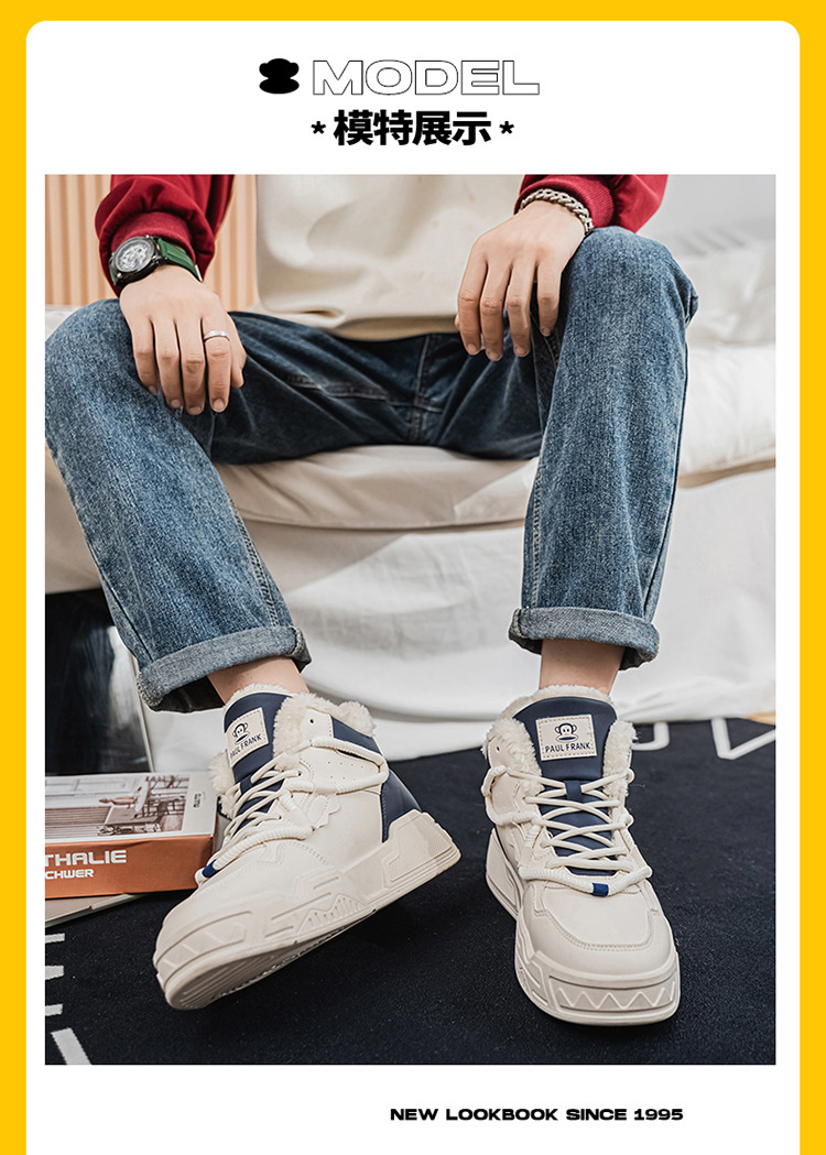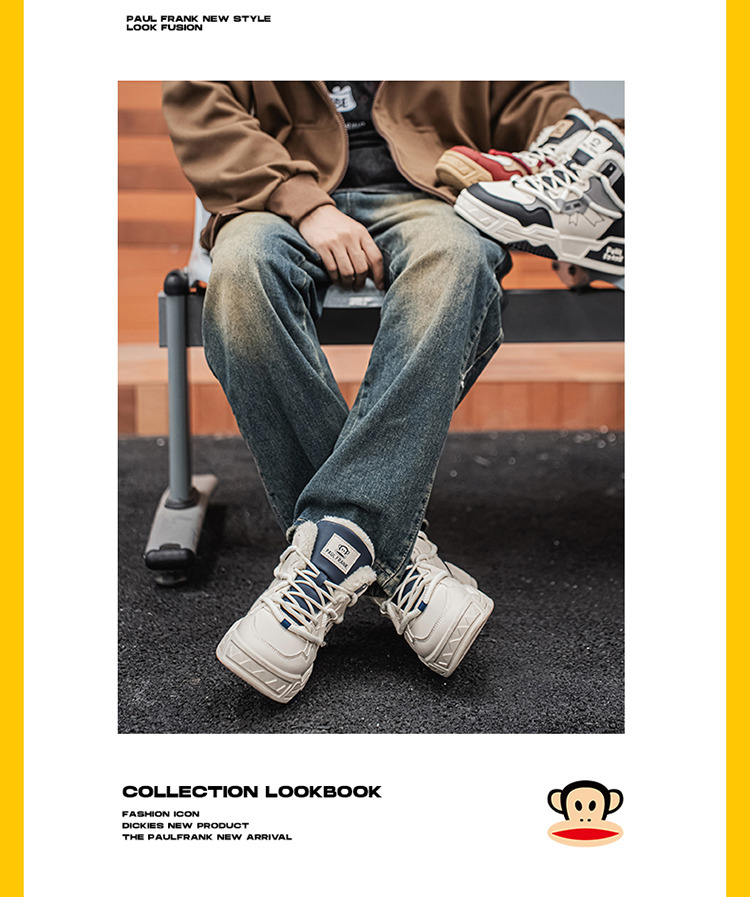 大嘴猴(paul frank)【休闲鞋男】周日(12.21)上午10点开始 加绒棉鞋复古高帮板鞋保暖鞋子男【情侣款】 365U-FF