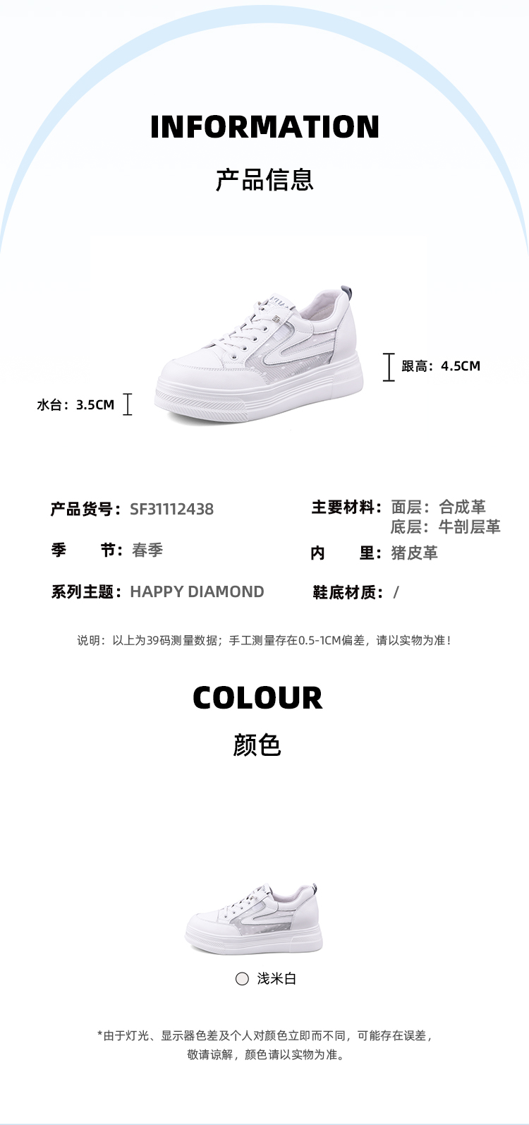 Safiya/索菲娅2023新品春夏百搭透气网面松糕厚底休闲板鞋 SF31112438
