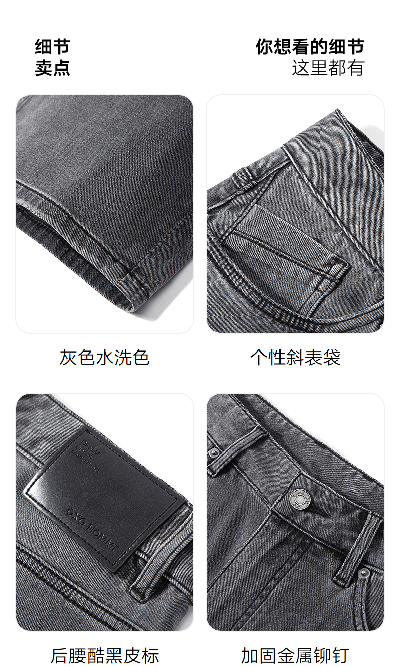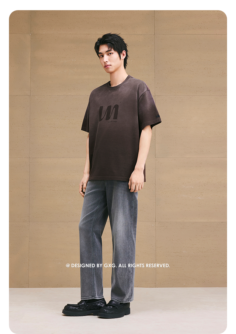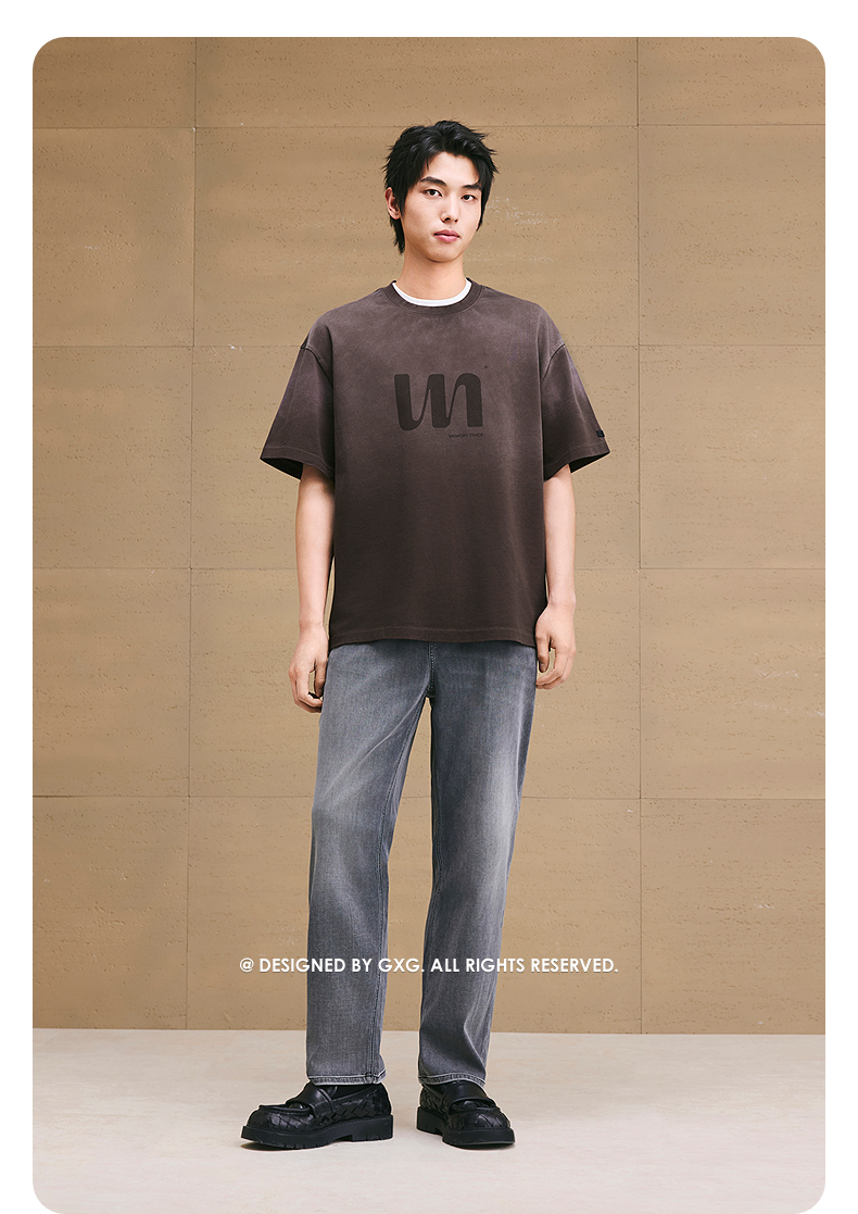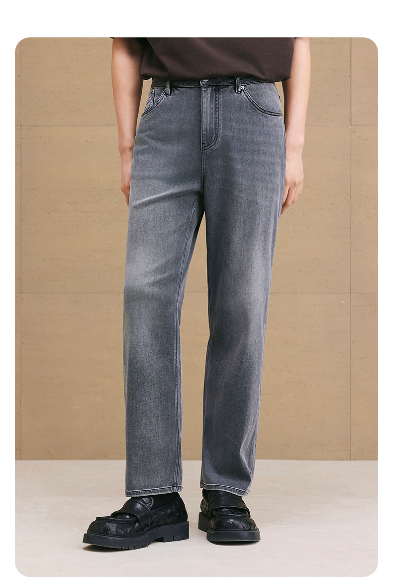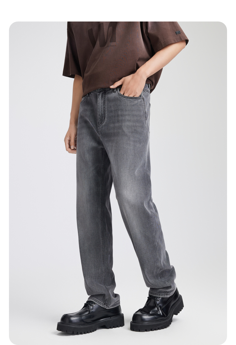 GXG男装 直筒复古感水洗牛仔裤休闲裤弹力长裤子 2025夏季新品