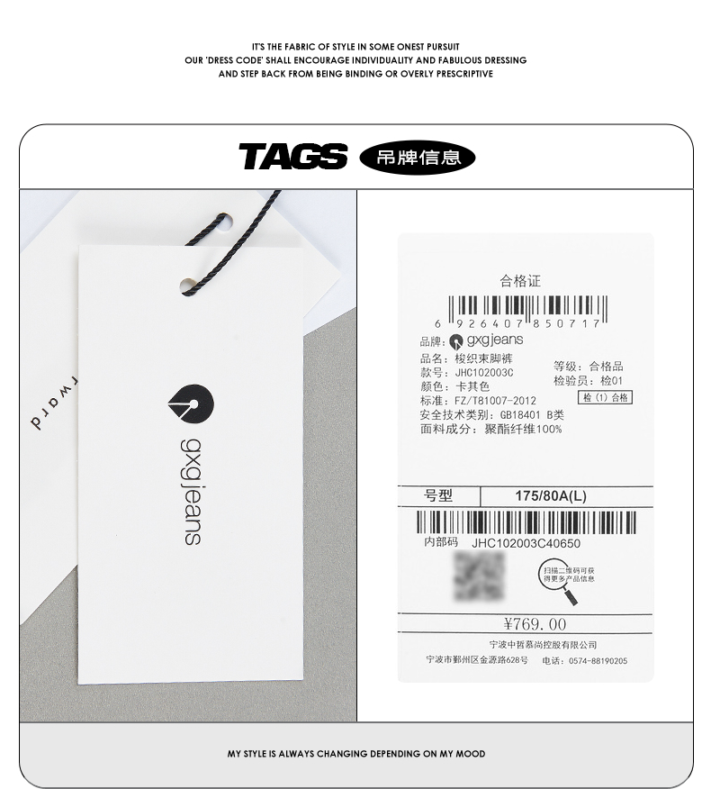 gxg jeans男装夏款休闲裤男拼接束脚裤撞色复古卫裤长裤