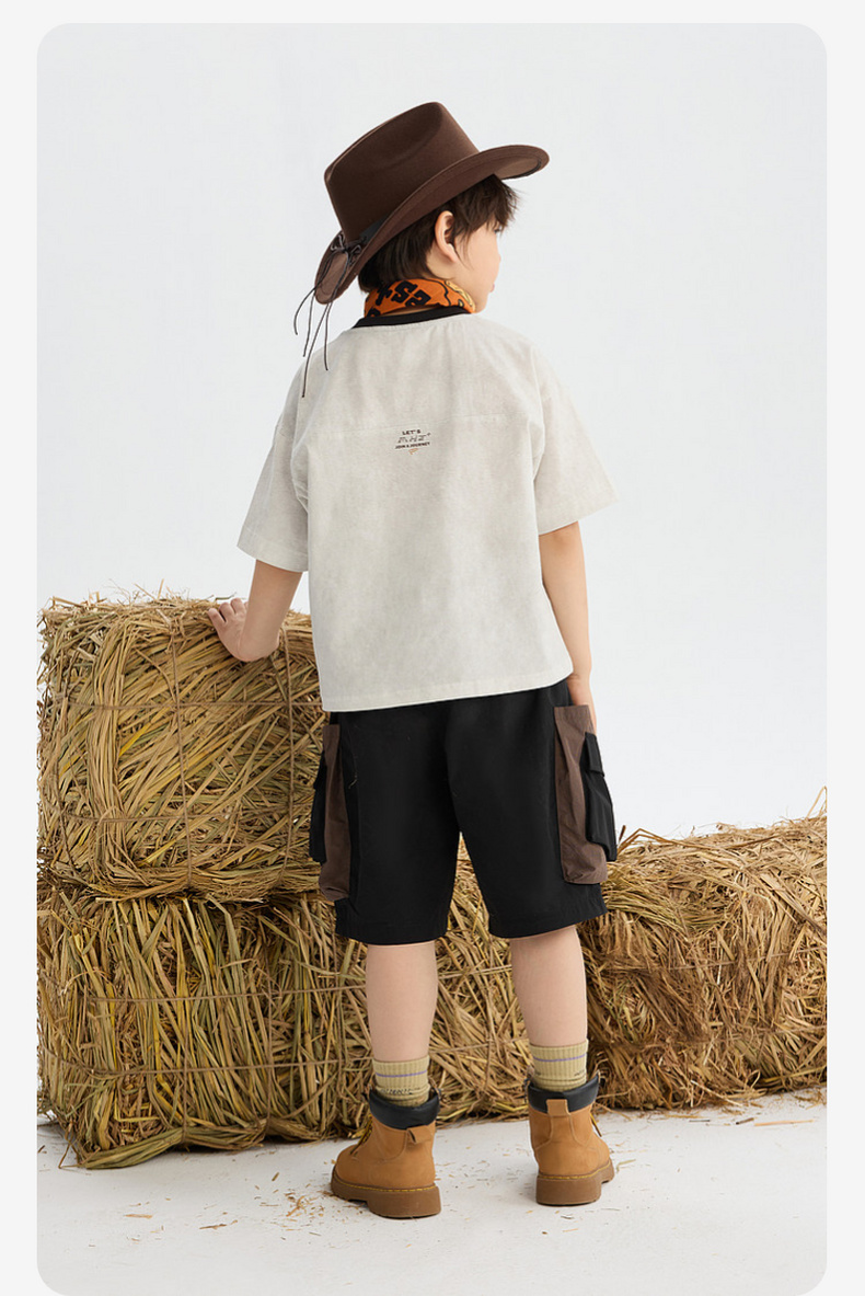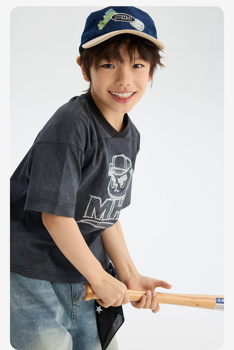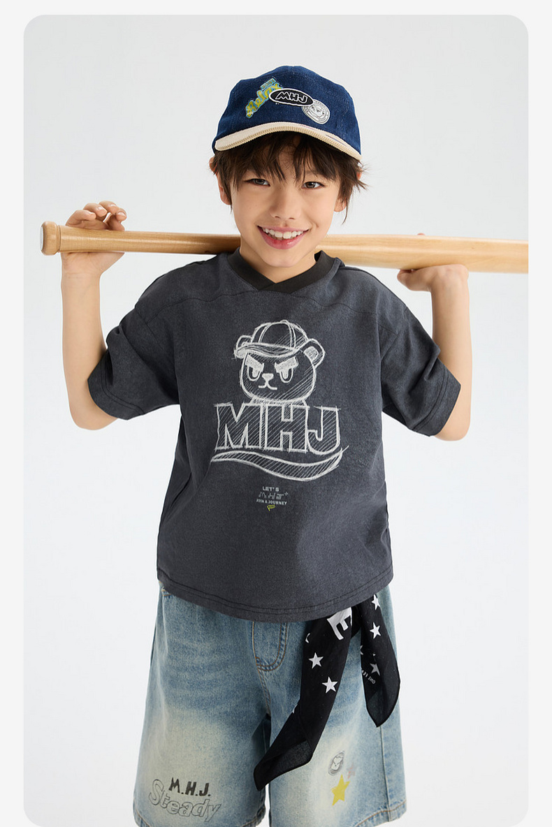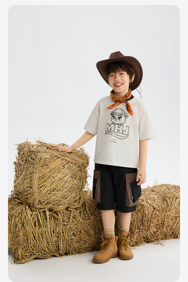 MANHOJIA【靓仔小熊T】儿童短袖T环保蜡染复古手绘印花亲肤棉T
