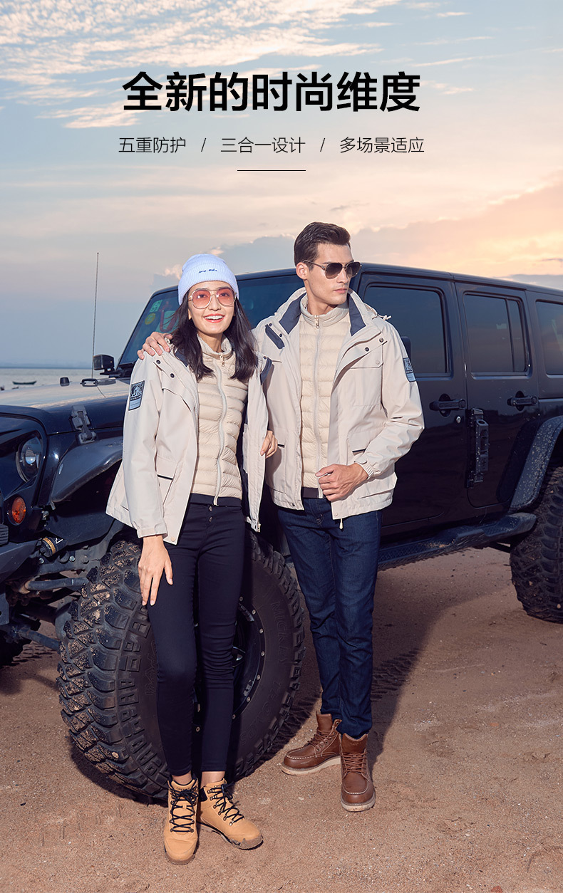 羽绒内胆情侣冲锋衣高端户外加厚三合一可拆卸两件套可团购定制