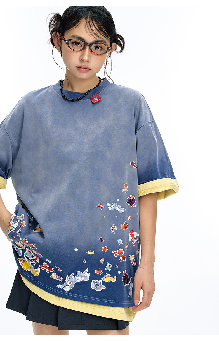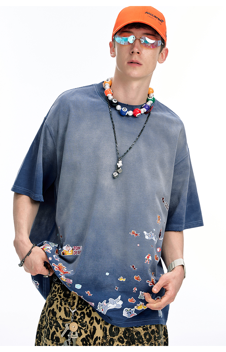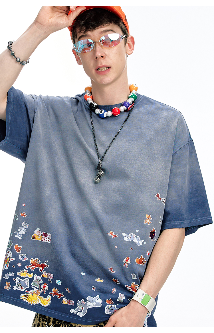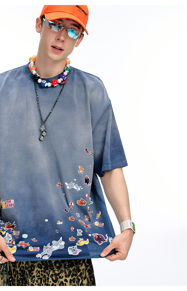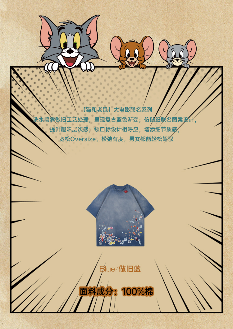 【俞更寅同款】猫和老鼠联名 BJHG不计后果渐变短袖t恤男夏季复古做旧半袖女