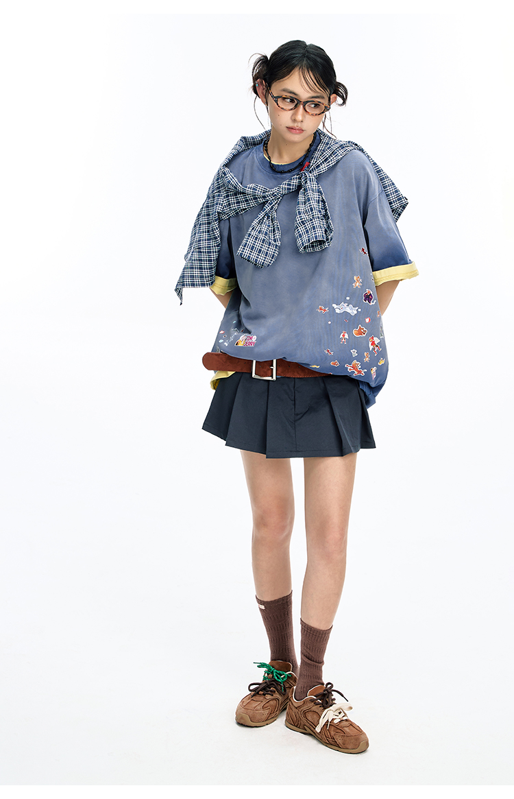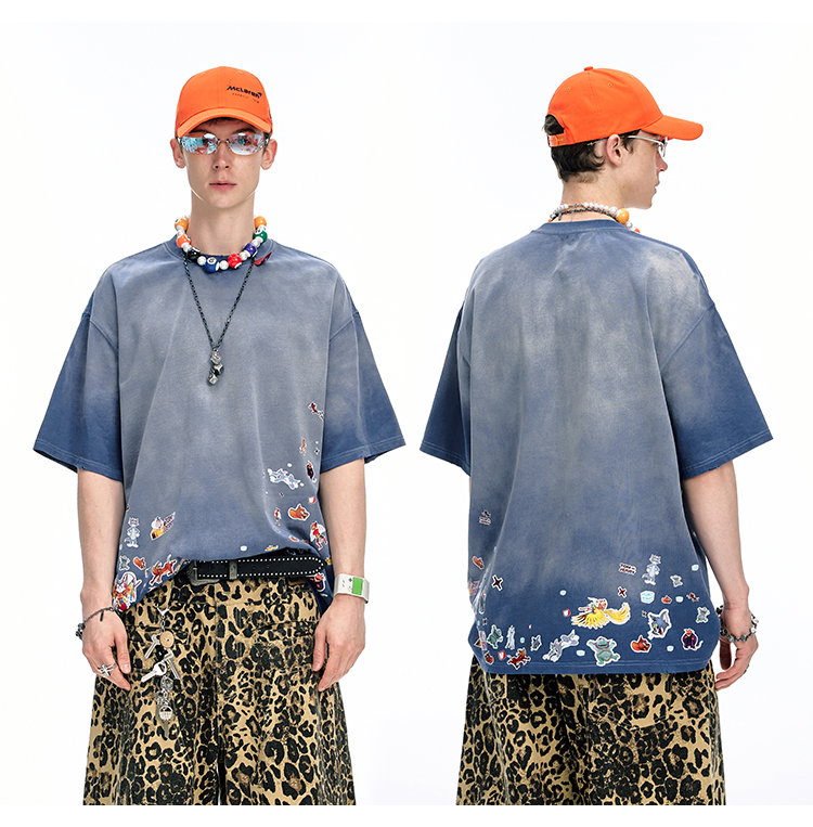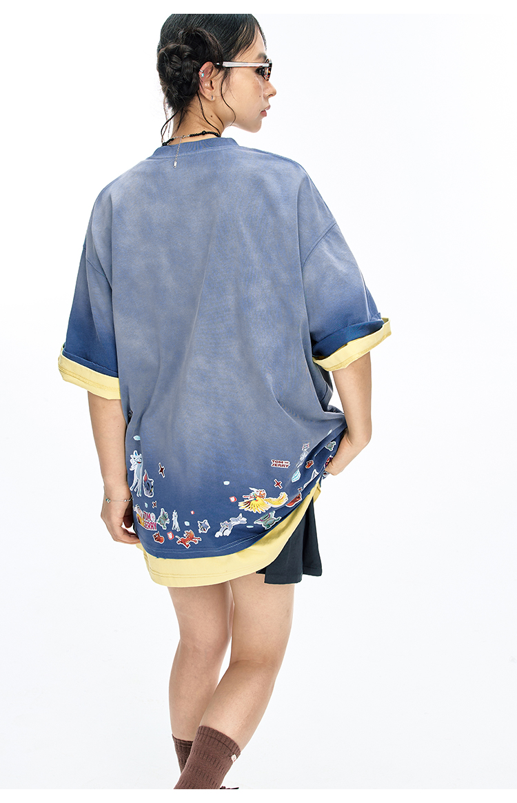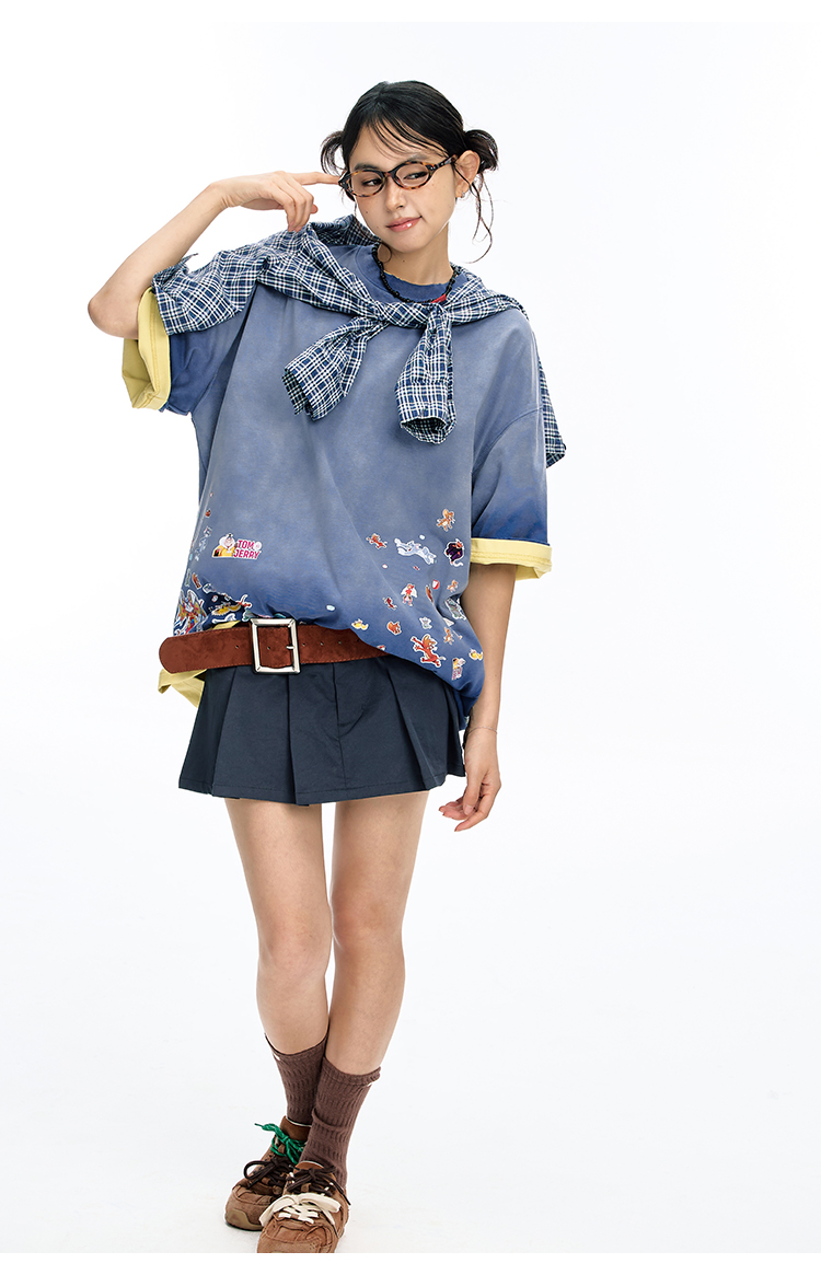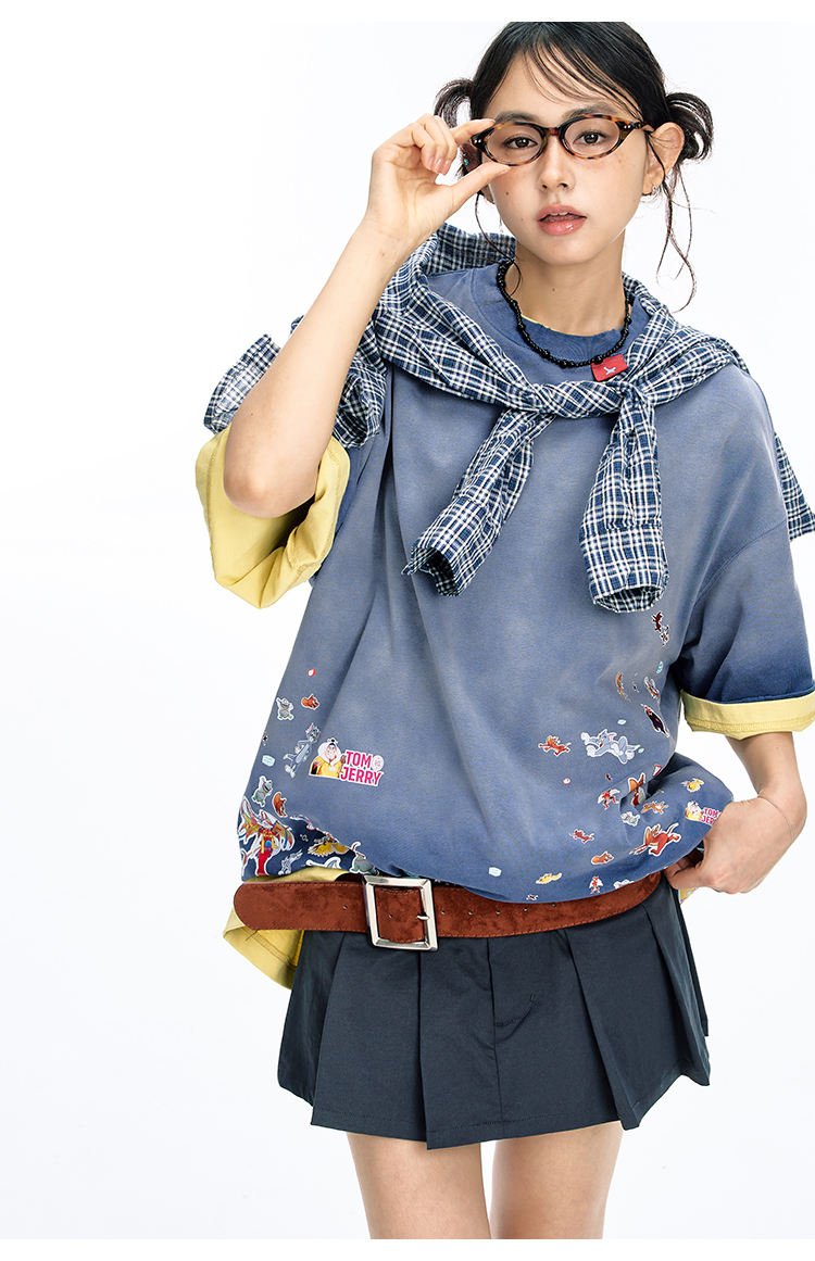 【俞更寅同款】猫和老鼠联名 BJHG不计后果渐变短袖t恤男夏季复古做旧半袖女